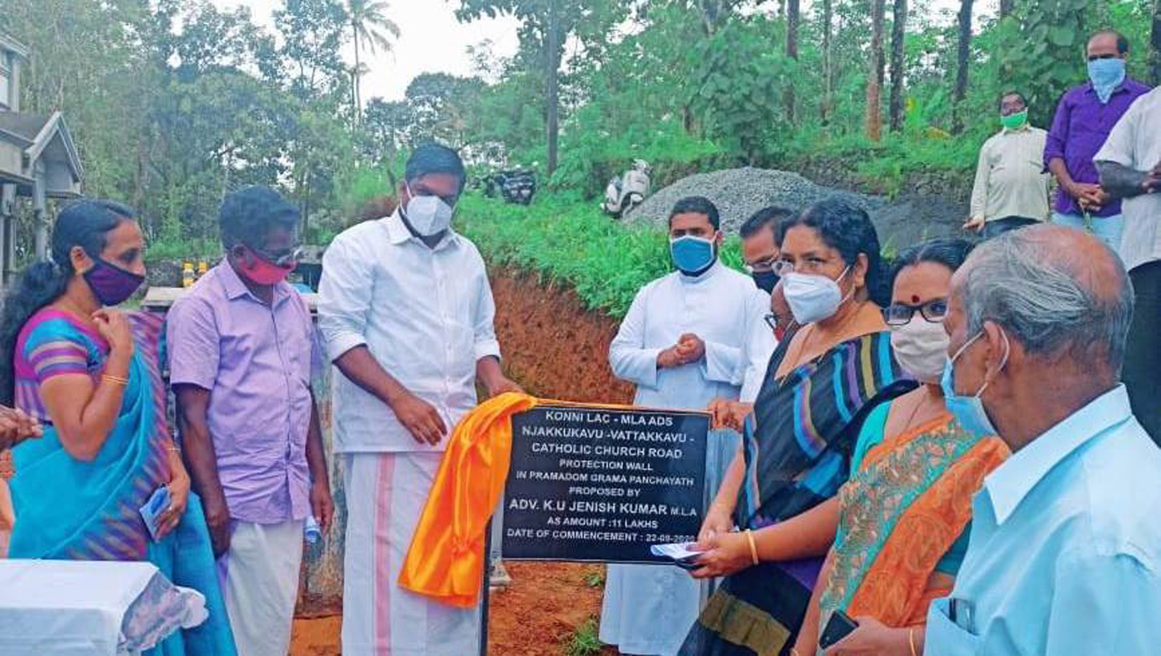 ഞക്കുകാവ് വട്ടക്കാവ് കത്തോലിക്കാ പള്ളി റോഡിന്റെയും സംരക്ഷണഭിത്തിയുടെയും നിര്‍മാണ ഉദ്ഘാടനം അഡ്വ.കെ.യു ജനീഷ് കുമാര്‍ എംഎല്‍എ നിര്‍വഹിച്ചു. എംഎല്‍എ യുടെ ആസ്തി വികസന ഫണ്ടില്‍ നിന്നും 11 ലക്ഷം രൂപ മുതല്‍ മുടക്കിയാണ് നിര്‍മാണപ്രവര്‍ത്തനം നടത്തുന്നത്.