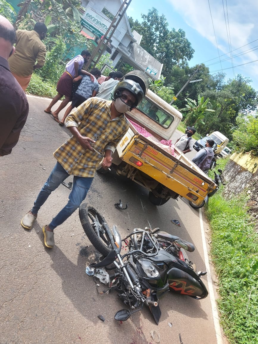 കോന്നി വാര്ത്ത : വാഴമുട്ടത്ത് ബൈക്കും പിക്കപ് വാനും തമ്മില് കൂട്ടിയിടിച്ചു . ബൈക്ക് യാത്രികന് പരിക്ക് പറ്റി . മറ്റ് വാഹനങ്ങള് ലഭിക്കാത്തതിനാല് ഇടിച്ച പിക്കപ്പില് തന്നെ ആശുപത്രിയില് കൊണ്ട് പോയി . കോവിഡ് ഡ്യൂട്ടി ആയതിനാല് ആംബുലന്സുകള് ലഭിച്ചില്ല .