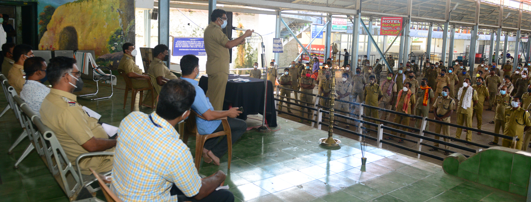 ചുമതല പൂര്ത്തിയാക്കി മടങ്ങുന്ന സ്പെഷല് പൊലീസ് ഓഫീസര് ബി. കൃഷ്ണകുമാര് കോവിഡ് പ്രതിരോധവുമായി ബന്ധപ്പെട്ട അനുഭവപാഠങ്ങള് രണ്ടാം ഘട്ടം ഡ്യൂട്ടിയില് പ്രവേശിച്ചവരുമായി പങ്കുവച്ചു. പുതുതായി എത്തിയവര്ക്ക് താമസിക്കാന് പുതിയ ബാരക്കുകളും ഒന്നിടവിട്ട ബെഡുകളും അധികൃതര് ഒരുക്കിയിട്ടുണ്ട്. ഡ്യൂട്ടി പൂര്ത്തിയാക്കിയവരുടെ താമസസ്ഥലങ്ങള് അണുവിമുക്തമാക്കും. കഴിഞ്ഞ ബാച്ചിലെ നാലു പേര്ക്ക് കോവിഡ് പോസിറ്റീവ് ആയെങ്കിലും ആശങ്ക പെടേണ്ട സാഹചര്യമില്ലെന്നും ആവശ്യമായ മുന്കരുതലുകള് എടുത്തിട്ടുണ്ടെന്നും സ്പെഷ്യല് പോലീസ് ഓഫീസര് പറഞ്ഞു.