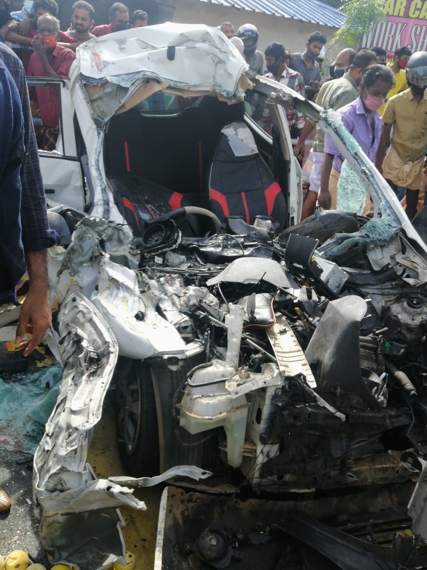 പന്തളം കടക്കാട് പള്ളി തെക്കേതിൽ നാസർ റാവുത്തകർ ഭാര്യ സജിലാ നാസർ എന്നിവരാണ് അപകടത്തില്‍ മരിച്ചത്. ഇവരോടൊപ്പം കാറിലുണ്ടായിരുന്ന മരുമകള്‍ സുമയ്യയെ ഗുരുതരാവസ്ഥയില്‍ തിരുവനന്തപുരം മെഡിക്കല്‍ കോളേജ് ആശുപത്രിയില്‍ പ്രവേശിപ്പിച്ചിരിക്കുകയാണ്. ഗൾഫിന് പോയ മകൻ ഷെഫിനെ തിരുവനന്തപുരം വിമാനത്താവളത്തിൽ കൊണ്ട് ചെന്ന് വിട്ടിട്ട് തിരികെ വരുമ്പോഴാണ് അപകടം നടന്നത്