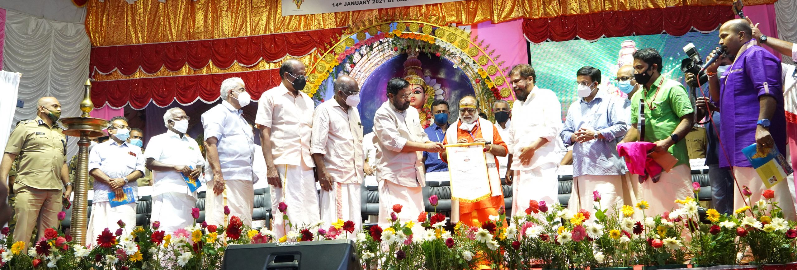 ചടങ്ങില് രാജു എബ്രഹാം എംഎല്എ അധ്യക്ഷത വഹിച്ചു. ദേവസ്വം ബോര്ഡ് പ്രസിഡന്റ് അഡ്വ. എന്. വാസു, ദേവസ്വം ബോര്ഡ് അംഗങ്ങളായ കെ.എസ്. രവി, പി.എം. തങ്കപ്പന്, ദേവസ്വം പ്രിന്സിപ്പല് സെക്രട്ടറി കെ.ആര്. ജ്യോതിലാല്, ശബരിമല സ്പെഷല് കമ്മീഷണര് എം. മനോജ്, എഡിജിപി എസ്. ശ്രീജിത്, കൊച്ചിന് ദേവസ്വം ബോര്ഡ് പ്രസിഡന്റ് വി. നന്ദകുമാര്, തിരുവിതാംകൂര് ദേവസ്വം കമ്മീഷണര് ബി.എസ്. തിരുമേനി തുടങ്ങിയവര് സംസാരിച്ചു. പുരസ്കാര ജേതാവ് വീരമണി രാജു മറുപടി പറഞ്ഞു.