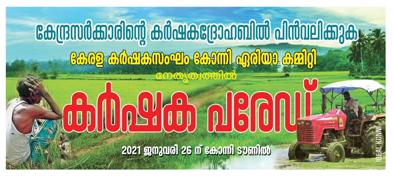 കോന്നി വാര്ത്ത ഡോട്ട് കോം : ദേശീയതലത്തില് നടക്കുന്ന കര്ഷക സമരത്തിന് പിന്തുണ പ്രഖ്യാപിച്ച് ജനുവരി 26 നു കോന്നിയില് കര്ഷക പരേഡ് സംഘടിപ്പിക്കുമെന്ന് കേരള കര്ഷക സംഘം കോന്നി ഏരിയാ സെക്രട്ടറി ആര് ഗോവിന്ദ് അറിയിച്ചു .