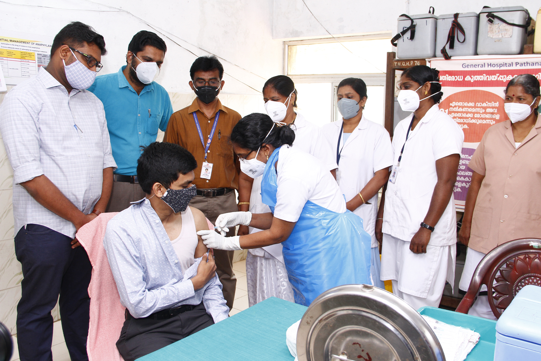 ആദ്യഘട്ടത്തില് ജില്ലയില് 17817 പേര് വാക്സിന് സ്വീകരിച്ചു. ഇവരുടെ ബൂസ്റ്റര് ഡോസ് 16ന് തുടങ്ങും. രണ്ടാംഘട്ടത്തില് റവന്യു, പഞ്ചായത്ത്, പോലീസ്, പ്രിസണ്, ഹോംഗാര്ഡ് തുടങ്ങിയ വിഭാഗങ്ങളിലെ ആറായിരത്തോളം പേര്ക്കാണ് വാക്സിനേഷന്. ഇതില് പത്തനംതിട്ട ഹോം ജില്ലയായ 3700 ഓളം പേര്ക്കുള്ള വാക്സിനേഷന് ഫെബ്രുവരി 12ന് ആരംഭിച്ചു. മറ്റു ജില്ലകള് ഹോം ജില്ലയായിട്ടുള്ളവര് അതതു സ്ഥലങ്ങളില് നിന്നും വാക്സിനേഷന് സ്വീകരിക്കും.
