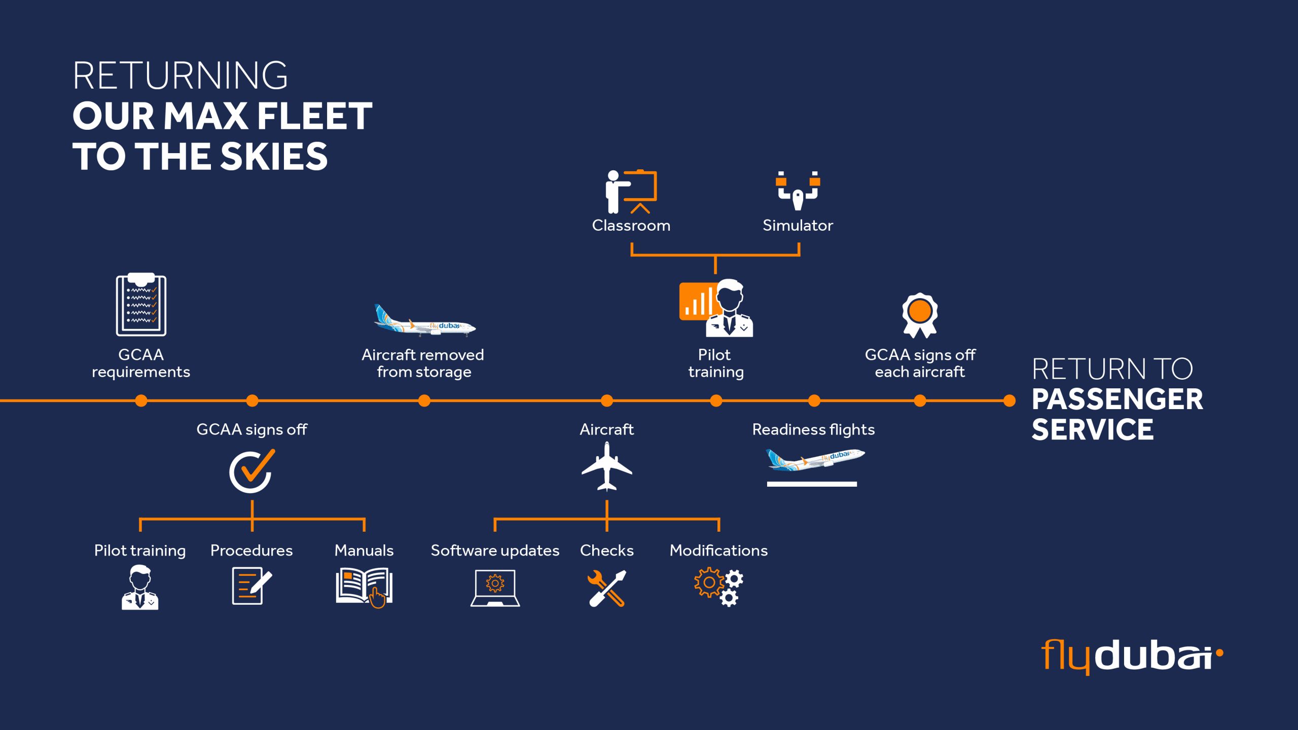 ബോയിങ്ങ് 737 മാക്‌സ് വിമാനങ്ങള്‍ക്ക്ഏര്‍പ്പെടുത്തിയ താല്‍ക്കാലിക നിരോധനം ജനറല്‍ സിവില്‍ ഏവിയേഷന്‍ അതോറിറ്റി പിന്‍വലിച്ചു.ഇതേ തുടര്‍ന്ന് ഇവയുടെ സര്‍വീസ് പുനരാരംഭിക്കാന്‍ തയ്യാറെടുക്കുകയാണ് ഫ്‌ളൈദുബായ്.സുരക്ഷാ ഭീതിയെ തുടര്‍ന്ന് പറക്കാന്‍ അനുമതി നിഷേധിക്കപ്പെട്ട ബോയിങ്ങ് 737 മാക്‌സ് വിമാനങ്ങള്‍ 20 മാസം നീണ്ടുനിന്ന പരിശോധനകള്‍ക്ക് ശേഷമാണ് വീണ്ടും സര്‍വീസ് ആരംഭിക്കുന്നത്