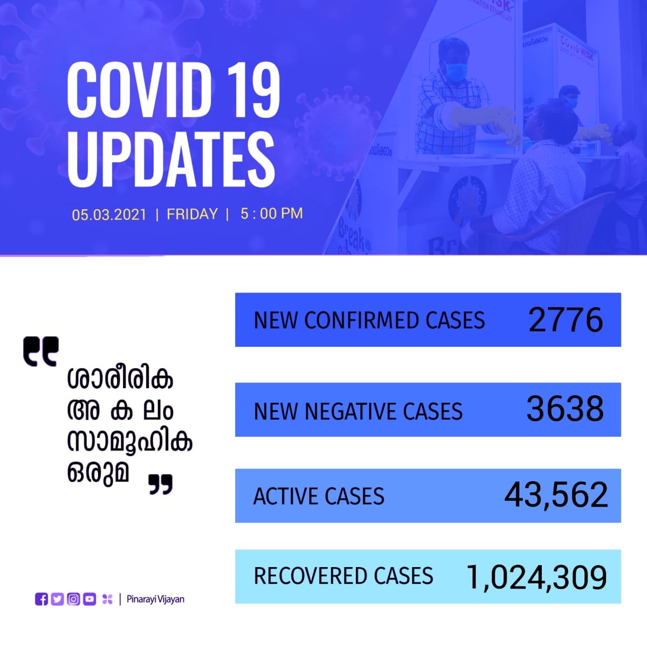 സംസ്ഥാനത്ത് ഇന്ന് 2776 പേര്‍ക്ക് കോവിഡ്-19 സ്ഥിരീകരിച്ചു