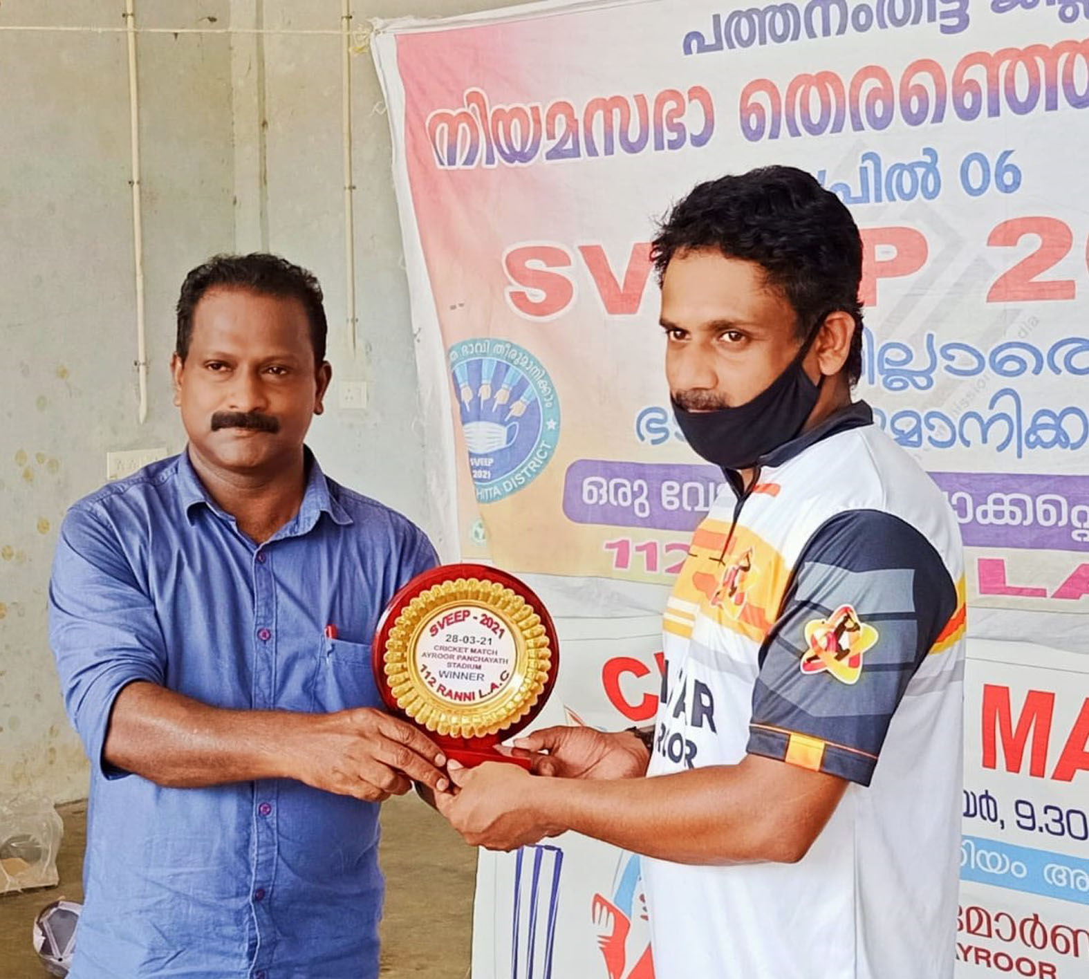 റാന്നി നിയോജക മണ്ഡലത്തില് വോട്ടര് ബോധവല്ക്കരണ പരിപാടിയായ സ്വീപ് (സിസ്റ്റമാറ്റിക് എഡ്യുക്കേഷന് ആന്റ് ഇലക്ടറല് പാര്ട്ടിസിപ്പേഷന്)കാമ്പയിന്റെ ഭാഗമായി പരിമിത ഓവര് ക്രിക്കറ്റ് മാച്ച് സംഘടിപ്പിച്ചു.