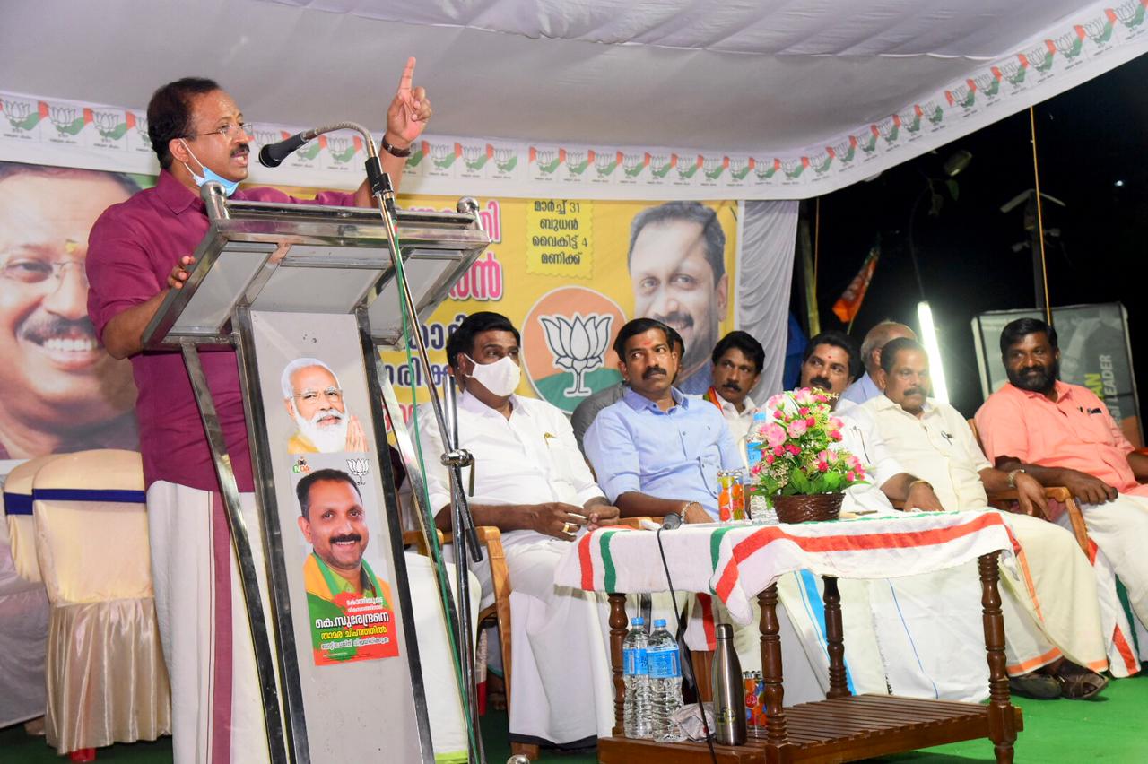 സോളാർ കേസിൽ കുറ്റവാളികളെ തുറുങ്കിലടക്കുമെന്ന് പറഞ്ഞ് അധികാരത്തിൽ വന്ന സർക്കാർ ഇപ്പോൾ പറയുന്നത് ഉമ്മൻ ചാണ്ടിക്കെതിരെ തെളിവില്ലെന്നാണ്. അടുത്ത 5 വർഷം ഞങ്ങൾക്കാണ് ഭരണം എന്നാണ് യുഡിഫ് നേതാക്കൾ പറയുന്നത്. സർക്കാരിന്റെ ഭൂമിയായ ചെറുവള്ളി എസ്റ്റേറ്റിൽ വിമാനത്താവളം പണിയാനൊരുങ്ങിയത് കമ്മീഷൻ തട്ടാനാണ്. ശബരിമലയിലെ മണൽ നീക്കിയതു വരെ സി പി എം ബിനാമികളാണ്. സ്പിങ്ങ്ളറിൽ നടന്നത് വൻ അഴിമതിയാണ്.