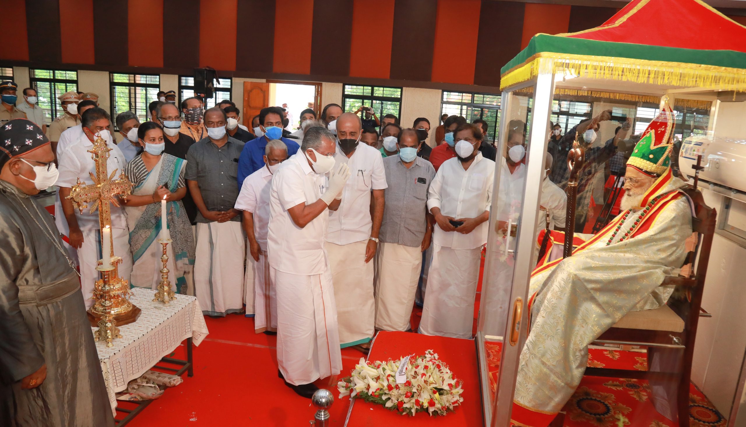 കാലം ചെയ്ത മാര്ത്തോമ്മ സഭാ മുന് അധ്യക്ഷന് ഡോ.ഫിലിപ്പോസ് മാര് ക്രിസോസ്റ്റം വലിയ മെത്രാപ്പൊലീത്തയ്ക്ക് മുഖ്യമന്ത്രി പിണറായി വിജയന് അന്ത്യോപചാരം അര്പ്പിച്ചു. വലിയ മെത്രാപ്പൊലീത്തയുടെ ഭൗതിക ശരീരം പൊതുദര്ശനത്തിനായി വച്ച തിരുവല്ല അലക്സാണ്ടര് മാര്ത്തോമ്മാ സ്മാരക ഹാളില് എത്തിയാണ് മുഖ്യമന്ത്രി അന്തിമോപചാരം അര്പ്പിച്ചത്.