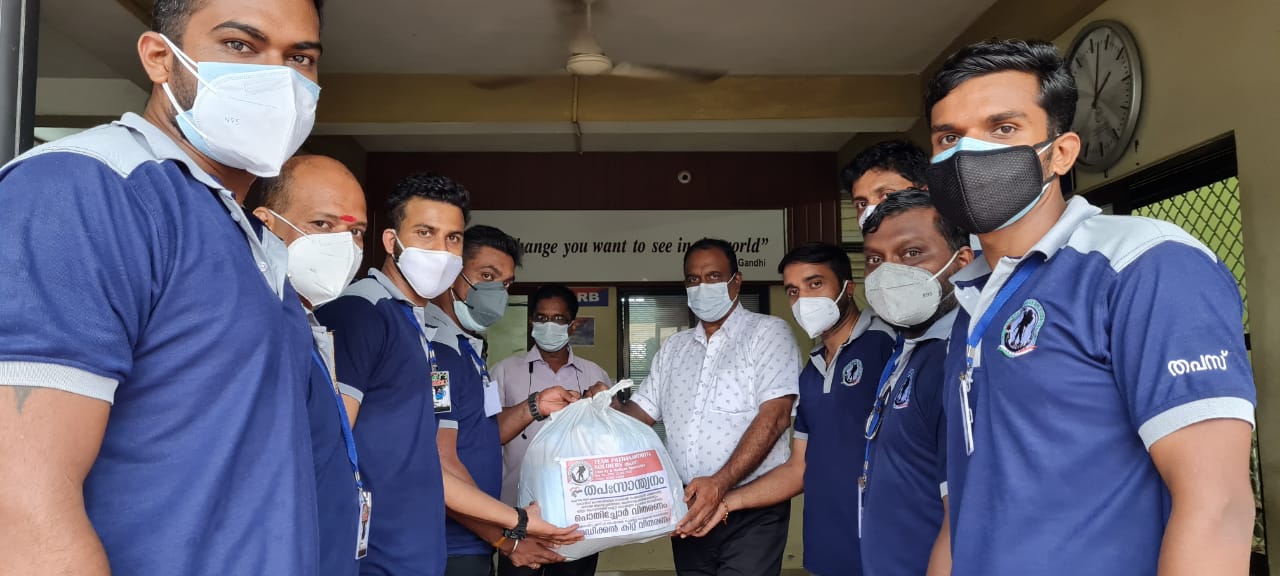 ജില്ലയിലെ വിവിധ ചെക്ക് പോസ്റ്റുകളിൽ സുരക്ഷാ ക്രമീകരണങ്ങളുടെ ഭാഗമായി സേവനമനുഷ്ടിക്കുന്ന കേരള പോലീസ് ഉദ്യോഗസ്ഥർക്ക്ഉള്ള മെഡിക്കൽ കിറ്റ് ഡി വൈ എസ് പി സന്തോഷ് കുമാറിന് കൈമാറി. ജില്ലാ ആസ്ഥാനത്തെ പോലീസ് ചെക്ക് പോസ്റ്റുകളിൽ പൊതിച്ചോർ വിതരണവും അതോടൊപ്പം ആരോരുമില്ലാതെ അലയുന്നവര്ക്ക് ഉച്ച ഭക്ഷണവും വിതരണം ചെയ്തു .