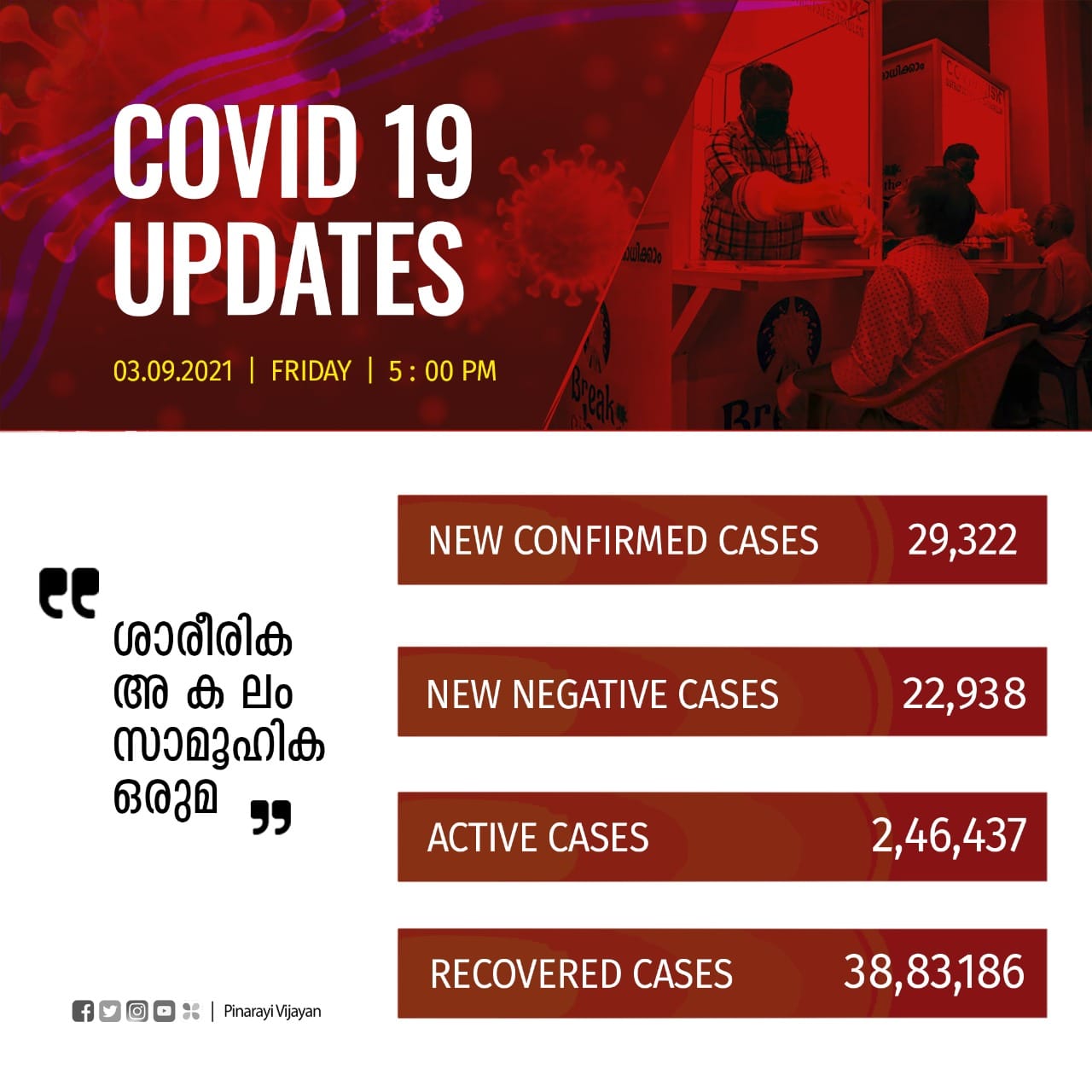 സംസ്ഥാനത്ത് ഇന്ന് 29,322 പേര്‍ക്ക് കോവിഡ്-19 സ്ഥിരീകരിച്ചു: 131 മരണം