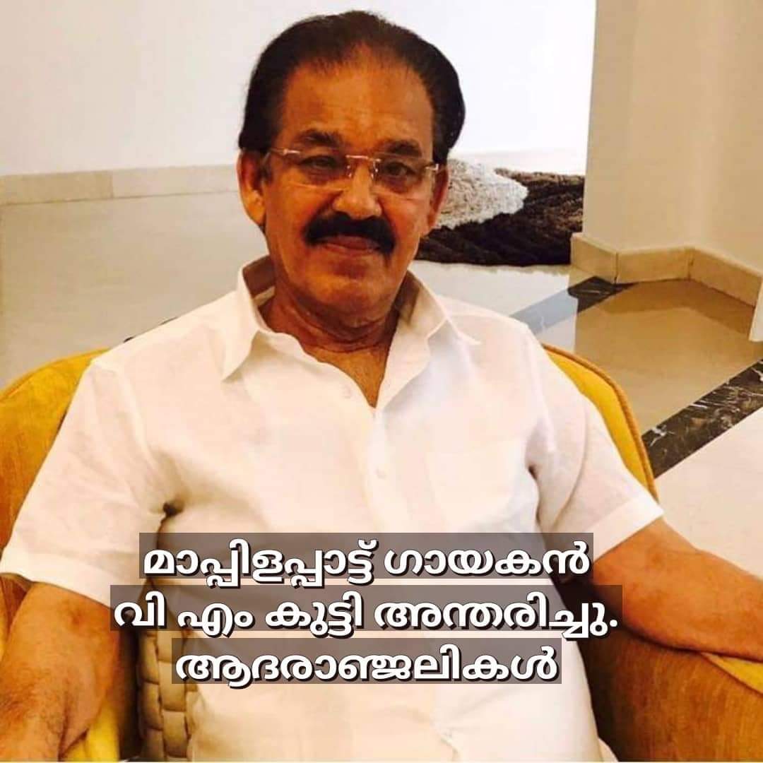 മാപ്പിളപ്പാട്ട് ഗായകൻ വിഎം കുട്ടി (86) (V M Kutty) അന്തരിച്ചു.