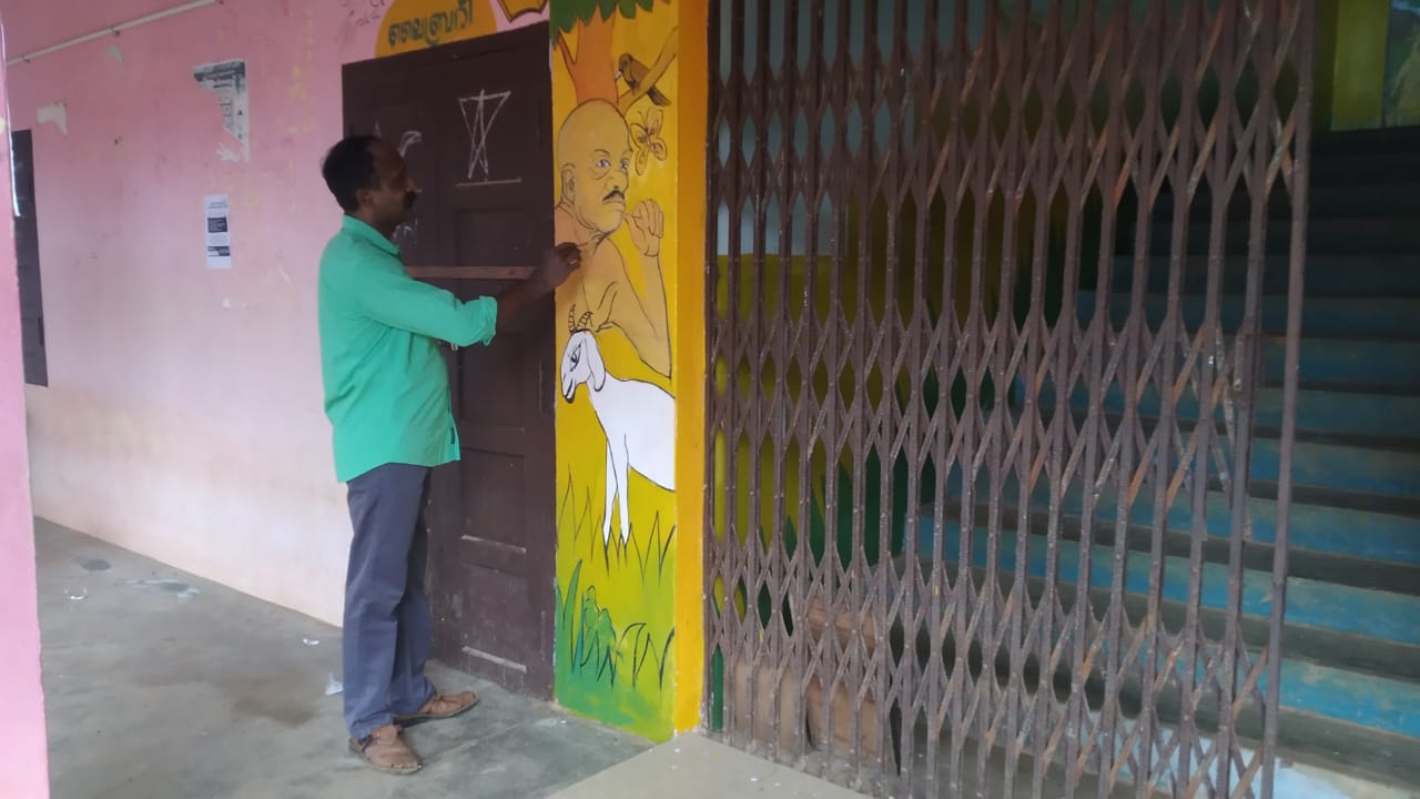 കുട്ടികൾക്കായി സ്കൂൾ ചുമരുകളെ ചിത്രം കൊണ്ട് മനോഹരമാക്കി അധ്യാപകൻ