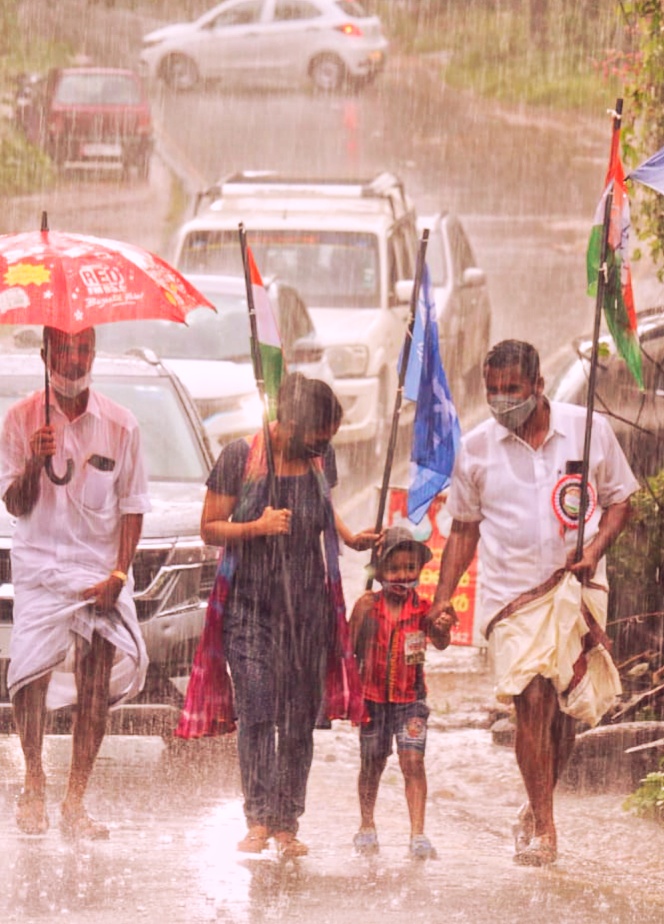 1984 – 85 ൽ അന്നത്തെ വനം വകുപ്പ് മന്ത്രി ശ്രീ.കെ.പി നുറുദ്ദീൻ സാർ തണ്ണിത്തോട്ടിൽ വച്ച് പങ്കെടുത്ത പൊതുസമ്മേളനത്തിലേക്ക് 5 വയസ്സുകാരനായ എന്റെ കൈ പിടിച്ച് അച്ഛൻ, തണ്ണിത്തോടിന്റെ മണ്ണിലേക്ക് എത്തിയത് ഇന്നും ഓർമ്മയിൽ മായാതെ നിൽക്കുന്നു. ഇന്നലെ 4 വയസ്സുകാരനായ മകൻ വരദ് കോരിച്ചൊരിയുന്ന മഴയെ അവഗണിച്ച് കേരള വിദ്യാർത്ഥി യൂണിയന്റെ ദീപശിഖാങ്കിത നീല പതാക വീശി ആവേശത്തോടെ പദയാത്രയുടെ ആദ്യാവസാനം പങ്കെടുത്തപ്പോൾ കാലം സാക്ഷിയാകുന്നത് തലമുറയുടെ ആവേശത്തിനാണ്. ജീവിത യാത്രയിൽ കരുത്തും കരുതലുമായി ചേർന്ന് നടക്കുന്ന പ്രീയ പങ്കാളി അമ്പിളിയും ഞങ്ങളോടൊപ്പം പദയാത്രയിൽ ആദ്യാവസാനം അണിചേർന്നപ്പോൾ…