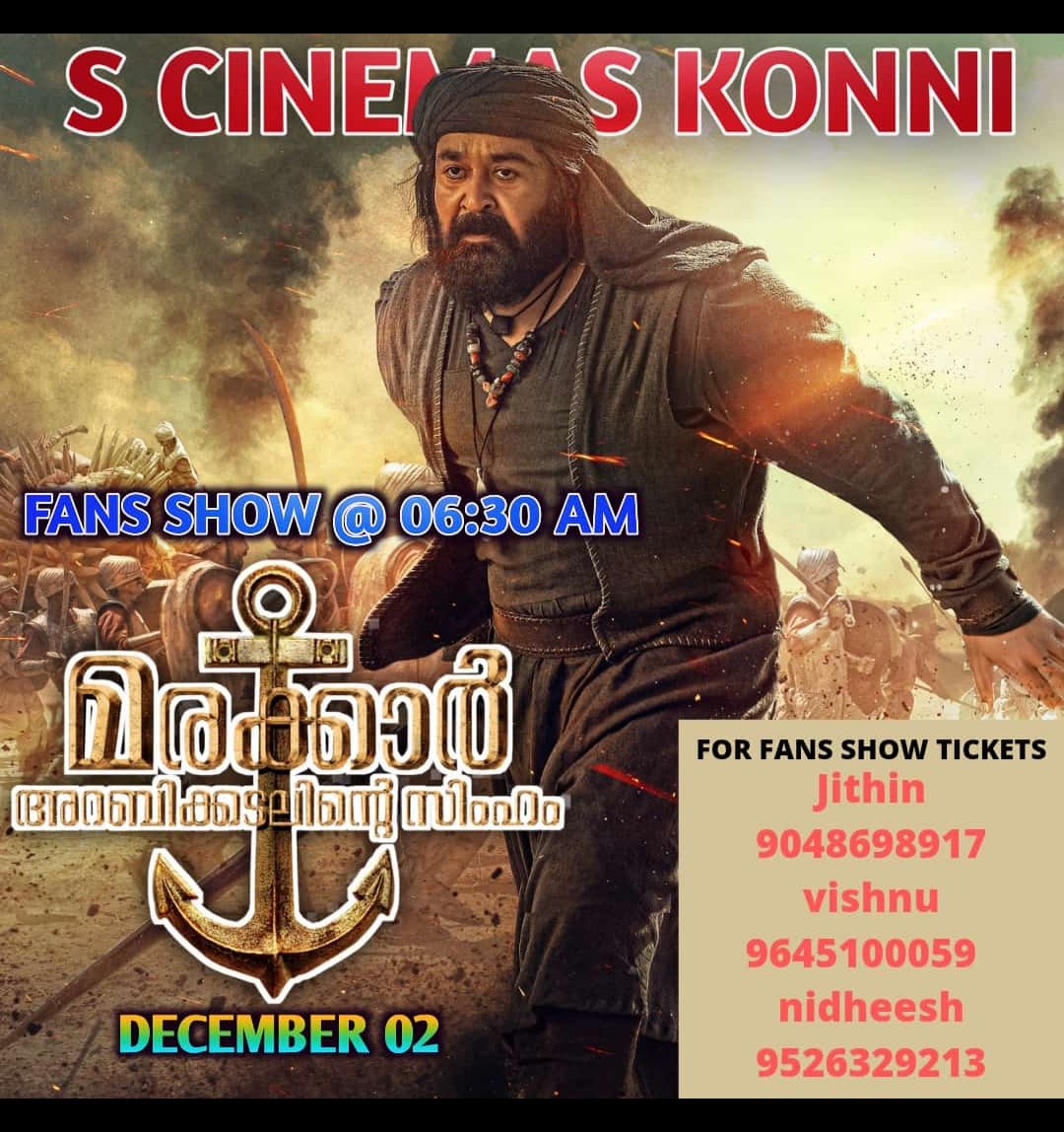 മരക്കാര്‍ അറബികടലിന്‍റെ സിംഹം : കോന്നി എസ് സിനിമാസ്സില്‍ നാളെ രാവിലെ 6.30 നു ഫാന്‍സ്‌ പ്രദര്‍ശനം ആരംഭിക്കും