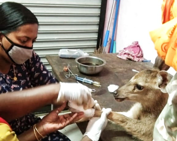 ചെന്നായയുടെ ആക്രമണത്തില്‍ പരിക്ക് പറ്റിയ മ്ലാവിന്‍ കുട്ടിയ്ക്ക് വനപാലകര്‍ സംരക്ഷണം ഒരുക്കി