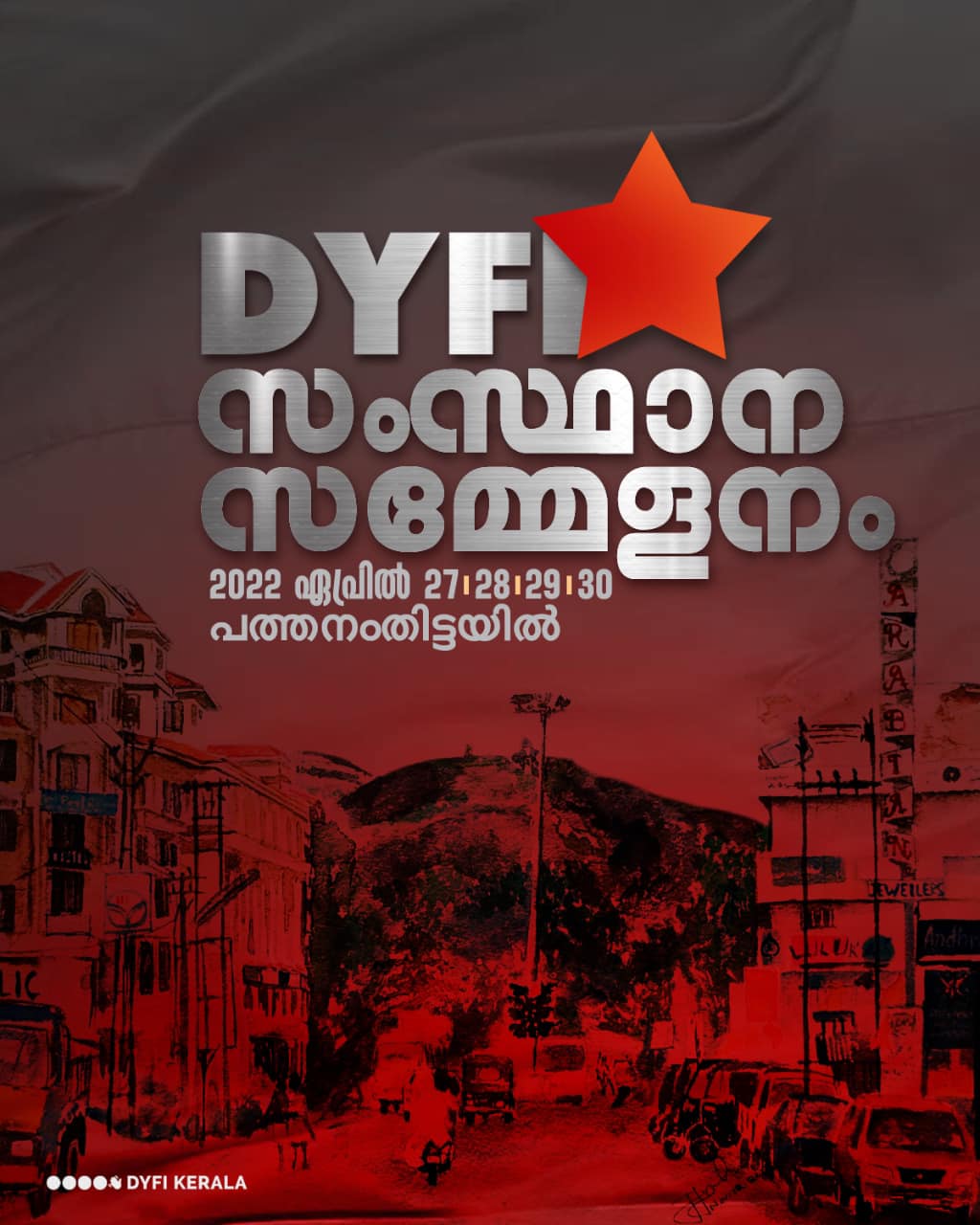 പതിനഞ്ചാമത് ഡിവൈഎഫ്ഐ സംസ്ഥാന സമ്മേളനം ഏപ്രില് 27, 28, 29, 30 തിയതികളില് പത്തനംതിട്ടയില് നടക്കുമെന്ന് സംസ്ഥാന സെക്രട്ടറി വി കെ സനോജ്, പ്രസിഡന്റ് എസ് സതീഷ്, ട്രഷറര് എസ് കെ സജീഷ് എന്നിവര് വാര്ത്താസമ്മേളനത്തില് പറഞ്ഞു. സമ്മേളനത്തിന്റെ സ്വാഗതസംഘ രൂപീകരണം ശനിയാഴ്ച പത്തനംതിട്ടയില് നടക്കുമെന്നും ഭാരവാഹികള് പറഞ്ഞു.