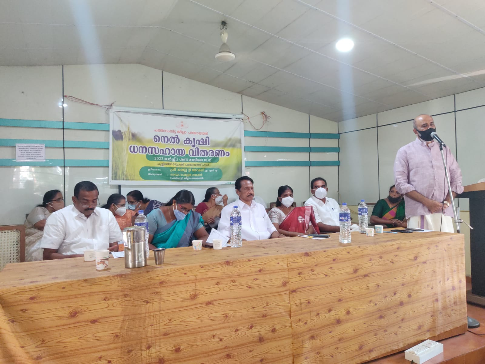 പത്തനംതിട്ട ജില്ലാ പഞ്ചായത്തിന്റെ വാര്ഷിക പദ്ധതിയില് ഉള്പെടുത്തി നെല്കൃഷി കൂലി ചിലവ് വിഹിതത്തിന്റെ രണ്ടാം ഗഡു വിതരണം ചെയ്തു. പുളിക്കീഴ് ബ്ലോക്ക് പഞ്ചായത്തില് നടന്ന പരിപാടി അഡ്വ. മാത്യു.ടി.തോമസ് എംഎല്എ ഉദ്ഘാടനം ചെയ്തു. ഇത്തരം പദ്ധതിയിലൂടെ കാര്ഷിക മേഖലയ്ക്കും കര്ഷകര്ക്കും പുത്തന് ഉണര്വ് നല്കുന്ന ജില്ലാ പഞ്ചായത്തിനെ എംഎല്എ അഭിനന്ദിച്ചു.
