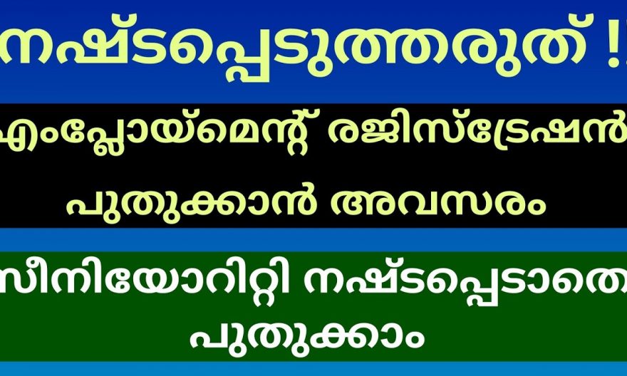 konnivartha.com : വിവിധ കാരണങ്ങളാൽ എംപ്ലോയ്മെന്റ് എക്സ്ചേഞ്ചിൽ രജിസ്ട്രേഷൻ പുതുക്കാൻ കഴിയാതെ സീനിയോറിറ്റി നഷ്ടപ്പെട്ടവർക്ക് തനത് സീനിയോറിറ്റി നിലനിർത്തി രജിസ്ട്രേഷൻ പുതുക്കുന്നതിന് ഏപ്രിൽ 30 വരെ സമയം അനുവദിച്ചു.