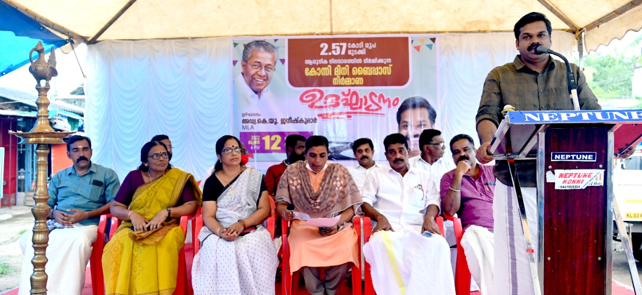 നിർമാണഉദ്ഘാടനം നിർവഹിച്ചു കൊണ്ട് സംസാരിക്കുകയായിരുന്നു അദ്ദേഹം.കോന്നിയിലെ ഗതാഗത കുരുക്കിന് കോന്നി മിനി ബൈപാസ് നിർമാണത്തോടെ ആശ്വാസമാവുകയാണ്. കോന്നി ടൗൺ കേന്ദ്രീകരിച്ച് വിവിധങ്ങളായ വികസനപദ്ധതികൾ ആണ് പ്രവർത്തി പുരോഗമിക്കുന്നത്. കോന്നികെഎസ്ആർടിസി ബസ് സ്റ്റേഷനിലേക്കുള്ള പ്രധാന പാതയായി പുതിയ മിനി ബൈപാസ് മാറും.മിനി ബൈപാസായി മാറുന്ന പോലീസ് സ്റേഷന്പടി -ടീ. വീ. എം- ഹോസ്പിറ്റല് ഇളങ്ങവട്ടം റോഡ്റോഡ് അഞ്ച് സ്ട്രെച്ച് ആയിട്ടാണ് നിർമ്മിക്കുന്നത്. പോലീസ്സ്ററേഷന്പടിയില് നിന്ന് ആരംഭിച്ചു ടീ.വീ. എം. ഹോസ്പിറ്റല് ജംഗ്ഷനില്അവസാനിക്കുകയും , രണ്ടും മുന്നും സ്ട്രെച്ച് ആദ്യ മെയിന് സ്ട്രെച്ചില്നിന്ന് ആരംഭിച്ചു കോന്നി മാര്ക്കറ്റ് ഉള്പ്പെടെ ഉള്ള ഭാഗത്തു കൂടി കടന്നുപുനലൂര് മുവാറ്റുപുഴ ഹൈവേയില് കയറുന്നു. നാലും അഞ്ചും സ്ട്രെച്ച്ആദ്യ സ്ട്രെച്ചിലെ 0/300 നിന്ന് ആരംഭിച്ചു തുക്കുപാലം റോഡും