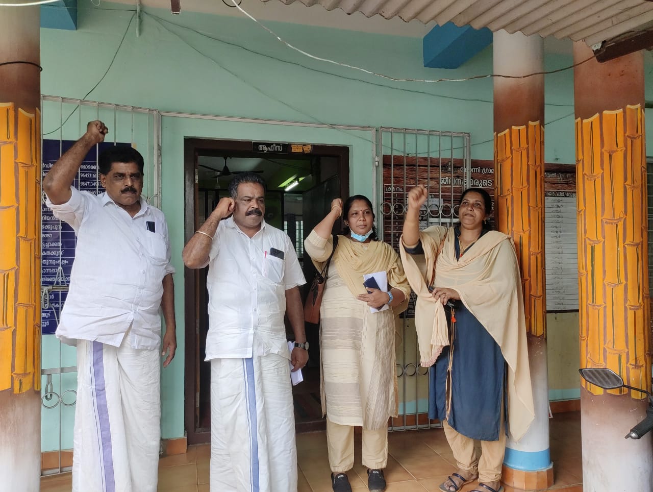 കോന്നി പഞ്ചായത്തിന് എതിരെ പ്രതിപക്ഷ അംഗങ്ങളുടെ സമരം