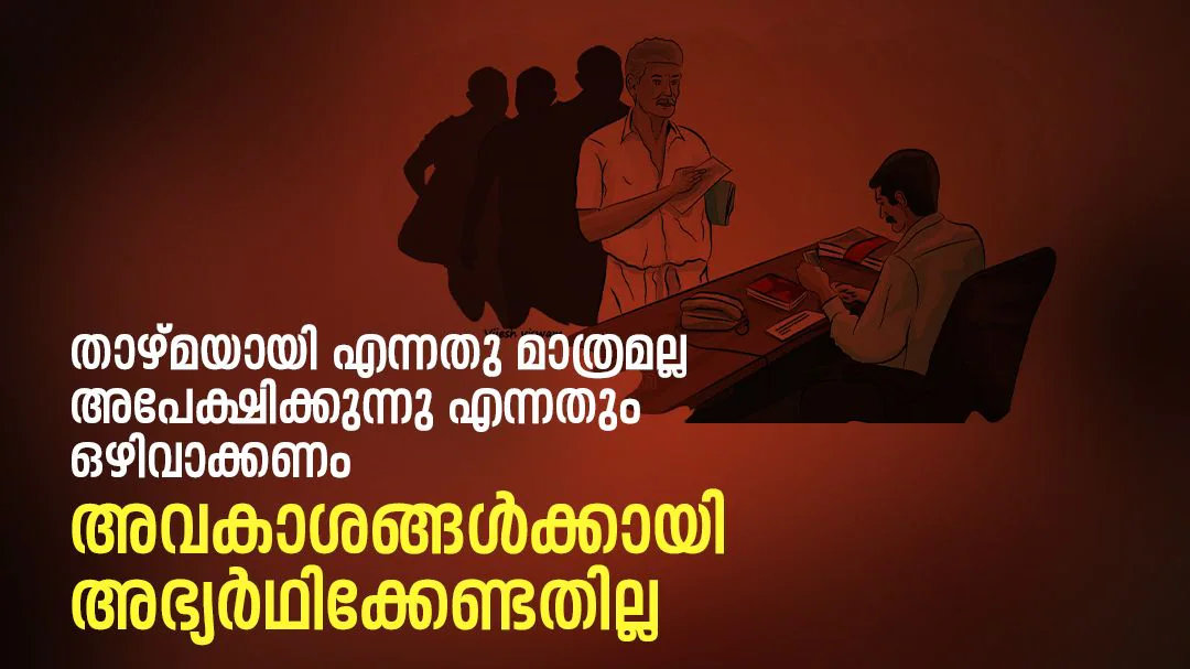 സംസ്ഥാനത്തെ എല്ലാ സർക്കാർ / അർധസർക്കാർ / പൊതുമേഖലാ സ്ഥാപനങ്ങളിലും വിവിധ ആവശ്യങ്ങൾക്കായി സമർപ്പിക്കേണ്ട അപേക്ഷാ ഫോറങ്ങളിൽ ‘താഴ്മയായി അപേക്ഷിക്കുന്നു’ എന്ന പദം രേഖപ്പെടുത്തിയിട്ടുണ്ടെങ്കിൽ അത് ഒഴിവാക്കി പകരം ‘അപേക്ഷിക്കുന്നു / അഭ്യർഥിക്കുന്നു’ എന്ന് ഉപയോഗിക്കുന്നതിനുള്ള നടപടി സ്വീകരിക്കുന്നതിന് ഉദ്യോഗസ്ഥ ഭരണ പരിഷ്കാര വകുപ്പ് എല്ലാ വകുപ്പു തലവൻമാർക്കും നിർദേശം നൽകി.
