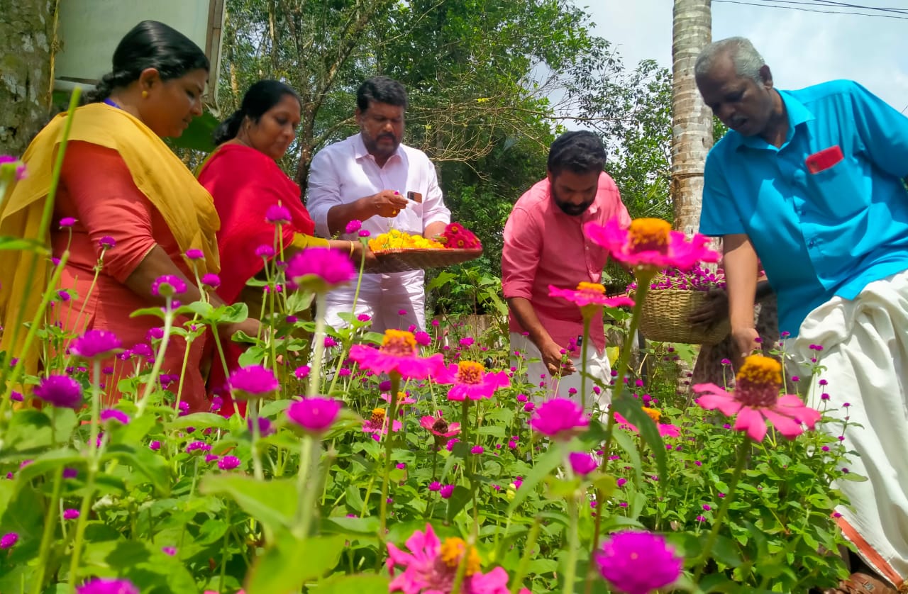 വാടാ മുല്ല, ബന്ദി, സീനിയ, തുളസി എന്നിവയാണ് വിളവെടുത്തത്. വര്‍ഷം മുഴുവന്‍ തെക്കേക്കരയ്ക്ക് ആവശ്യമായ പൂക്കള്‍ ഉത്പാദിപ്പിക്കുക എന്ന ലക്ഷ്യത്തില്‍ കൂടുതല്‍ പ്രദേശത്തേക്ക് കൃഷി വ്യാപിപ്പിക്കും.