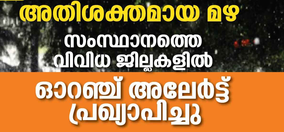 konnivartha.com : സംസ്ഥാനത്ത് വ്യാപകമായി ശക്തമായ മഴയ്ക്ക് സാധ്യത. തിരുവനന്തപുരം, കൊല്ലം, പത്തനംതിട്ട, ആലപ്പുഴ, കോട്ടയം, എറണാകുളം, ഇടുക്കി, തൃശൂർ, മലപ്പുറം എന്നിവിടങ്ങളിൽ ഓറഞ്ച് അലേർട്ട് പ്രഖ്യാപിച്ചു