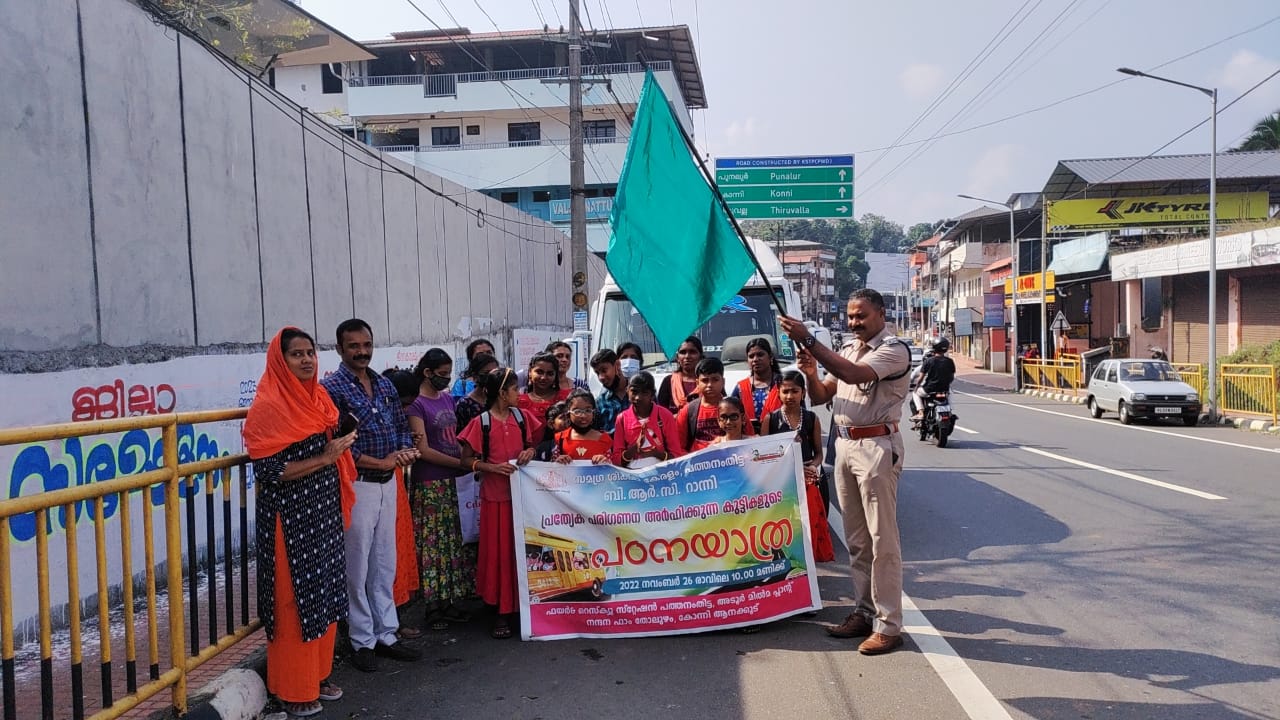 റാന്നി ഡിവൈഎസ്  പി  ജി .സന്തോഷ് കുമാർ പഴവങ്ങാടിയിൽ ഫ്ലാഗ് ഓഫ് ചെയ്തു.പത്തനംതിട്ട ഫയർ ആൻഡ് റെസ്ക്യൂ ആസ്ഥാനത്ത് ഓഫീസർമാരായ അജിത് കുമാർ, അനൂപ് എന്നിവർ വിവിധ ഉപകരണങ്ങൾ പ്രവർത്തിപ്പിച്ചു കാണിച്ചു.