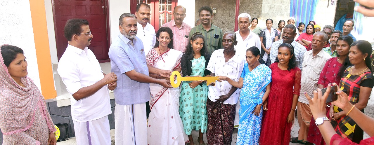വീടുകളുടെ താക്കോൽദാനവും ഉദ്ഘാടനവും കൃഷി വകുപ്പ് മന്ത്രി പി. പ്രസാദ് നിർവഹിച്ചു. വർഷങ്ങളായി യാതൊരു വരുമാനവും ഇല്ലാതെ രോഗിയായ ജോസഫും ഭാര്യ മേരിയും രണ്ട് പെൺമക്കളുമായി ചോർന്നൊലിക്കുന്ന വാതിലുകൾ പോലുമില്ലാതിരുന്ന ഒരു ചെറിയ കുടിലിൽ ആയിരുന്നു താമസിച്ചിരുന്നത്. ഇവരുടെ ദയനീയ അവസ്ഥ നേരിൽകണ്ട് മനസ്സിലാക്കിയ ടീച്ചർ ഇവർക്കായി വീട് പണിയുവാൻ വന്ന അവസരത്തിലാണ് ഇവരുടെ കുടിലിനു പുറകിലായി സോണി യും സഹോദരിയായ ദീപ്തിയും മാതാവ് മരണപ്പെട്ടതിനുശേഷം യാതൊരു സുരക്ഷിതത്വവും ഇല്ലാത്ത തകർന്ന കുടിലിലായിരുന്നു താമസിച്ചിരുന്നത്.