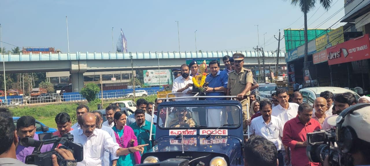 അറുപത്തിയൊന്നാമത് കേരള സ്കൂൾ കലോത്സവത്തിൽ ഒന്നാം സ്ഥാനം നേടുന്ന ജില്ലയ്ക്കുള്ള സ്വർണ്ണക്കപ്പ് ജില്ലാ അതിർത്തിയായ രാമനാട്ടുകരയിൽ പൊതുവിദ്യാഭ്യാസ വകുപ്പ് മന്ത്രി വി ശിവൻകുട്ടിയും ടൂറിസം പൊതുമരാമത്ത് വകുപ്പ് മന്ത്രി പി എ മുഹമ്മദ് റിയാസും ചേർന്ന് ഏറ്റുവാങ്ങി. ശേഷം ഘോഷയാത്രയായി കപ്പ് കോഴിക്കോട് നഗരത്തിലേക്ക്. ഫറോക്ക്ചുങ്കം, ഫറോക്ക് ബസ് സ്റ്റാന്റ്, ചെറുവണ്ണൂർ സ്രാമ്പ്യ, മോഡേൺ എന്നിവിടങ്ങളിൽ വിവിധ സ്കൂളുകൾ ചേർന്ന് ഘോഷയാത്രയ്ക്ക് വർണ്ണാഭമായ സ്വീകരണം നൽകി. തുടർന്ന് സ്വർണ്ണക്കപ്പുമായുള്ള ഘോഷയാത്ര കോഴിക്കോട് മുതലക്കുളം മൈതാനിയിൽ എത്തിച്ചേർന്നു.