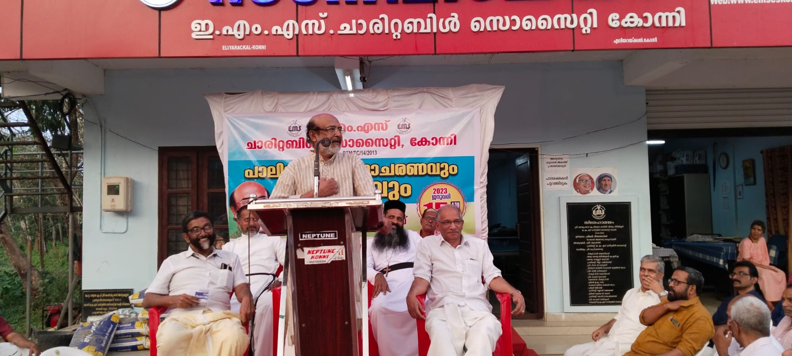 പാലിയേറ്റീ രoഗത്ത് കോന്നി ഇഎംഎസ് ചാരിറ്റബിൾ സൊസൈറ്റി മാതൃകാപരമായ പ്രവർത്തനമാണ് നടത്തുന്നത്. സൊസൈറ്റി പ്രസിഡൻ്റ് ശ്യാംലാൽ അധ്യക്ഷനായി .പി ജെ അജയകുമാർ, റവ.ജസൺ, റവ.സജു, ബ്ലോക്ക് പഞ്ചായത്ത് പ്രസിഡൻ്റ് ജിജി സജി, അരുവാപ്പുലം പഞ്ചായത്ത് പ്രസിഡൻ്റ് രേഷ്മ മറിയം റോയി, ബ്ലോക്ക് പഞ്ചായത്തംഗം വർഗ്ഗീസ് ബേബി, ഭരണ സമിതി അംഗങ്ങളായ കേണൽ .ഇന്ദിരാദേവി, വി രംഗനാഥ്, സന്തോഷ് കുമാർ, സ്നേഹാലയം അഡ്മിനിസ്ട്രേറ്റർ സോമനാഥൻ എന്നിവർ സംസാരിച്ചു.സൊസൈറ്റി സെക്രട്ടറി കെ എസ് ശശികുമാർ സ്വാഗതവും ജോയിൻ്റ് സെക്രട്ടറി ടി രാജേഷ് കുമാർ നന്ദിയും