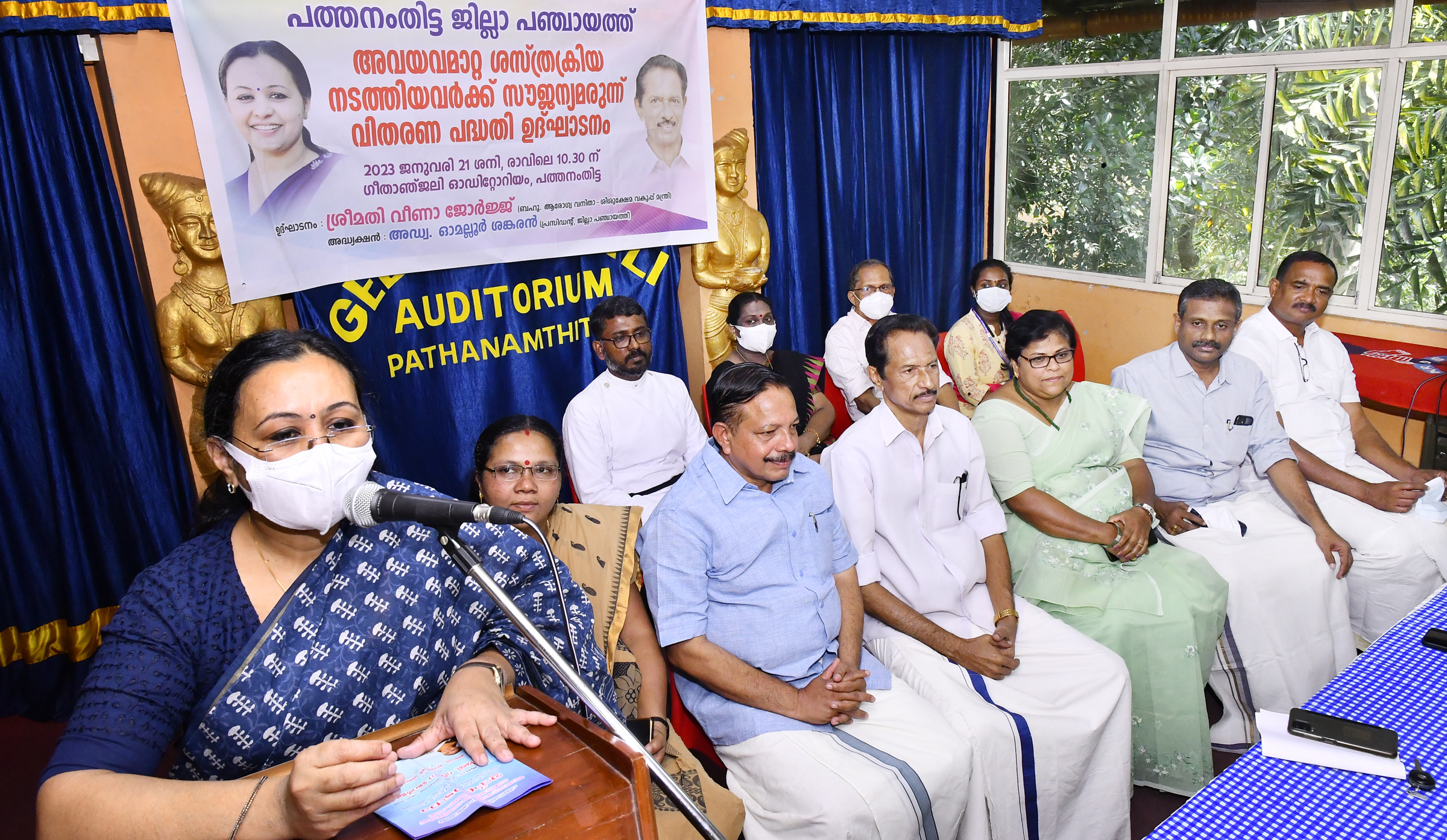 സങ്കീര്‍ണമായ അവയവമാറ്റ ശസ്ത്രക്രിയകള്‍ക്കായി ഭാരിച്ച ചിലവ് ഏറ്റെടുക്കേണ്ടി വരുന്ന കുടുംബത്തിന് ജില്ലാ പഞ്ചായത്തിന്റെ സൗജന്യ മരുന്ന് വിതരണ പദ്ധതി സഹായകരവും മാതൃകാപരവുമാണെന്ന് ആരോഗ്യ വകുപ്പ് മന്ത്രി വീണാ ജോര്‍ജ് പറഞ്ഞു.പത്തനംതിട്ട ജില്ലാ പഞ്ചായത്തിന്റെ 2022-23 ലെ വാര്‍ഷിക പദ്ധതിയില്‍ ഉള്‍പ്പെടുത്തി അവയവ മാറ്റ ശസ്ത്രക്രിയ നടത്തിയവര്‍ക്കുള്ള സൗജന്യ മരുന്ന് വിതരണത്തിന്റെ ഉദ്ഘാടനം പത്തനംതിട്ടയിൽ നിര്‍വഹിച്ചു സംസാരിക്കുകയായിരുന്നു മന്ത്രി.