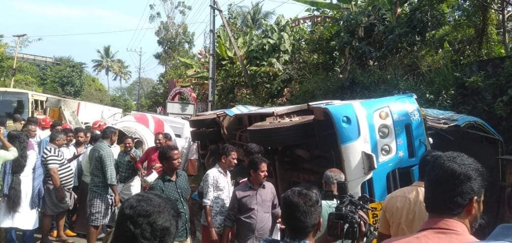 മിക്സറിന്റെ ഭാഗം തട്ടി ബസ് സൈഡിലേക്ക് മറിഞ്ഞുള്ള അപകടത്തിലാണ് പരുക്കേറെയും ഉണ്ടായിരിക്കുന്നത്. നേരേ മറിച്ച് മിക്സര് പൂര്ണമായും ബസിന് മുകളിലേക്ക് മറിഞ്ഞിരുന്നെങ്കില് ദുരന്തത്തിന്റെ വ്യാപ്തി വര്ധിക്കുമായിരുന്നു.