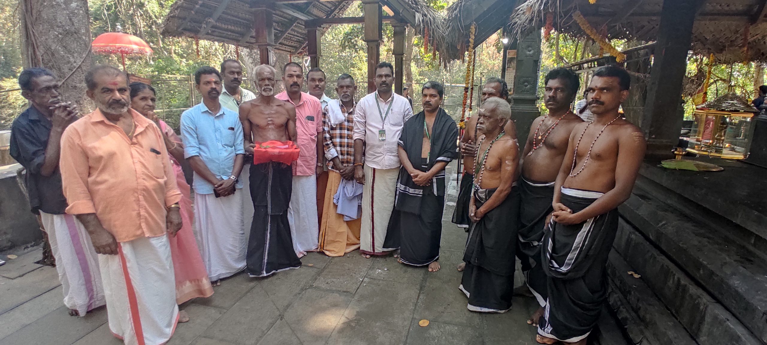 konnivartha.com : കോന്നി വള്ളിക്കോട് കിഴക്കേക്കര തലയിറ ദേവീക്ഷേത്രത്തിലെ ഒന്നാം ഉത്സവ മഹോത്സവത്തോട് അനുബന്ധിച്ച് സമർപ്പിക്കുന്ന പടേനിയ്ക്കുള്ള പട്ടും മണിയും കച്ചയും കല്ലേലി ഊരാളി അപ്പൂപ്പൻ കാവിൽ (മൂലസ്ഥാനം ) നിന്നും പൂജിച്ച് ഊരാളിയ്ക്ക് കൈമാറി. കിഴക്കേക്കര തലയിറ ദേവീക്ഷേത്ര കമ്മറ്റി ഭാരവാഹികൾ കല്ലേലി ഊരാളി അപ്പൂപ്പൻ കാവ് (മൂലസ്ഥാനം )ഭാരവാഹികൾ ഊരാളിമാർ എന്നിവർ ചടങ്ങിൽ പങ്കെടുത്തു.