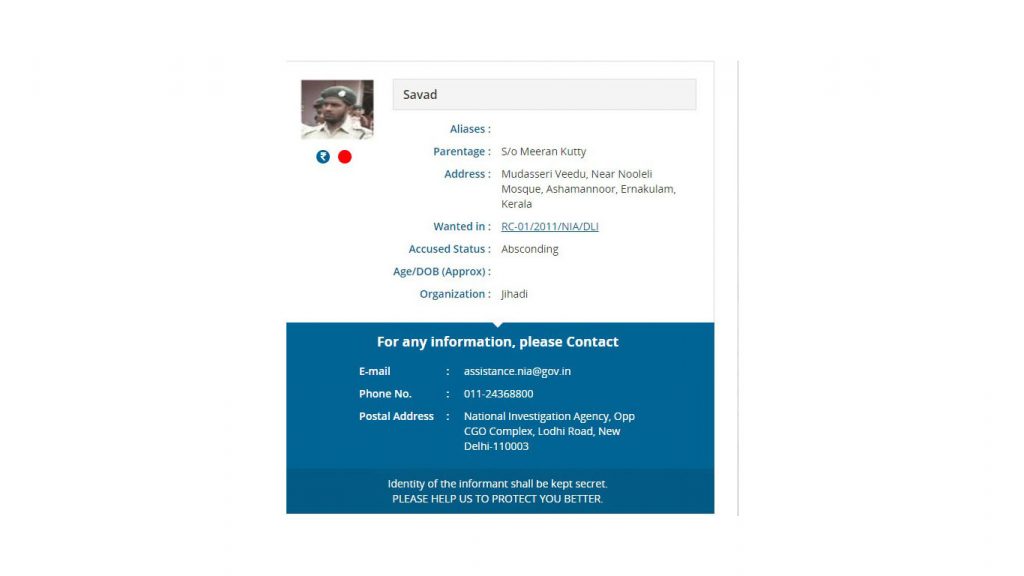 konnivartha.com : തൊടുപുഴ കൈവെട്ട് കേസിലെ മുഖ്യ പ്രതിയെ കുറിച്ച് വിവരം നൽകുന്നവർക്ക് 10 ലക്ഷം രൂപ പരിതോഷികം നൽകുമെന്ന് എൻഐഎയുടെ പ്രഖ്യാപനം. കേസിലെ ഒന്നാംപ്രതി എറണാകുളം ഓടക്കലി സ്വദേശി സവാദിനെ കുറിച്ച് വിവരം നൽകുന്നവർക്കാണ് എൻഐഎ പാരിതോഷികം പ്രഖ്യാപിച്ചിരിക്കുന്നത്.