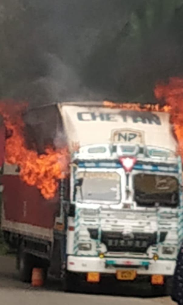 അയിരൂരിൽ കണ്ടെയ്നർ ലോറിക്ക് തീപിടിച്ചു