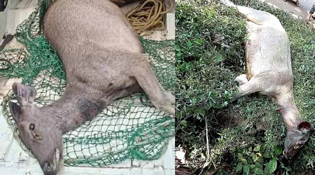 മതില്‍ ചാടുന്നതിനിടെ റോഡിലേക്ക് വീണ മ്ലാവ് കഴുത്തൊടിഞ്ഞു ചത്തു