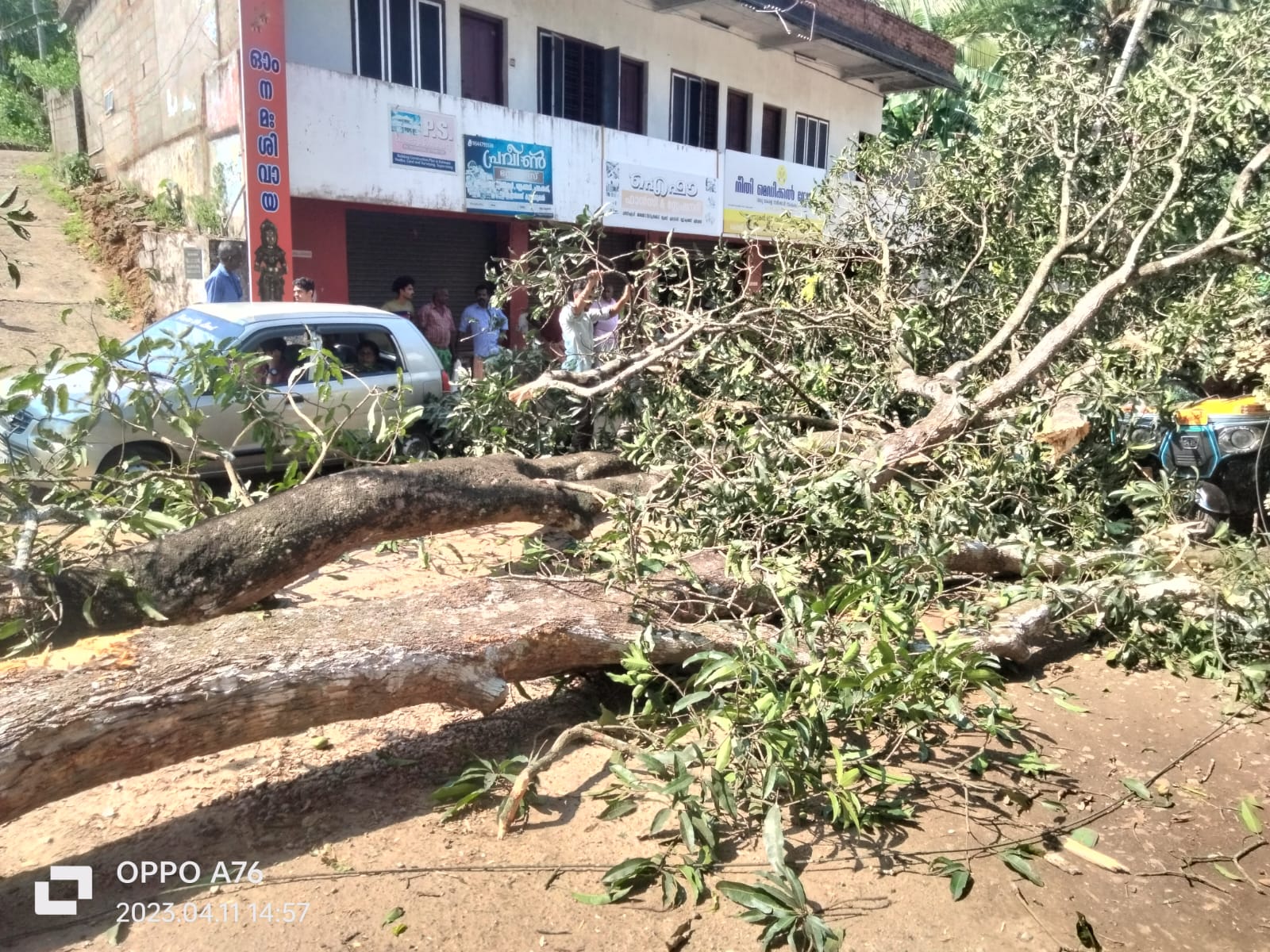 മരം ഒടിഞ്ഞു വരുന്നത് കണ്ടു ആളുകള് ഓടി മാറി . സ്റ്റാന്ഡില് ഉള്ള ഓട്ടോ മുകളിലേക്ക് ആണ് മരത്തിന്റെ ഒരു ഭാഗം നിലം പൊത്തിയത്