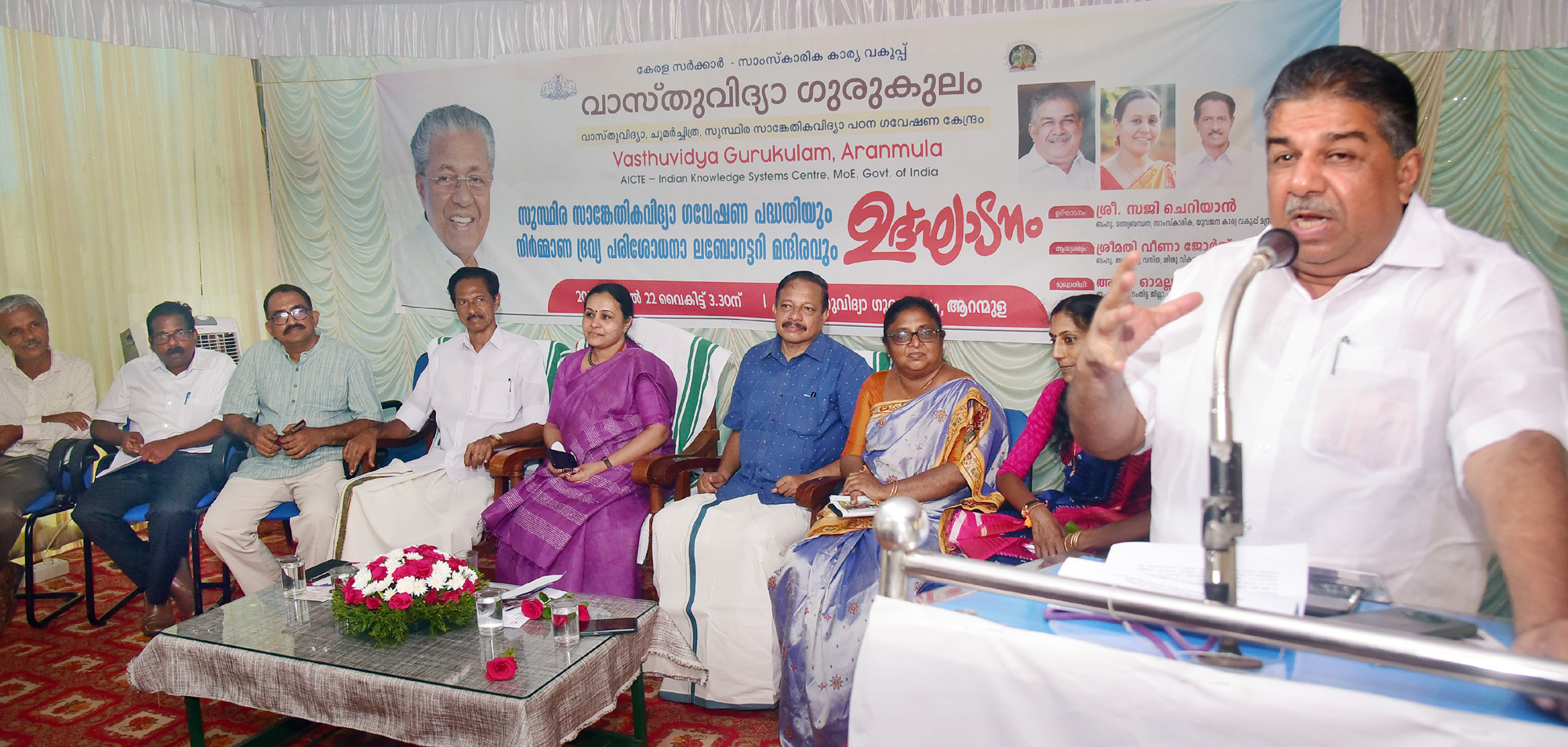 വാസ്തുവിദ്യ ഗുരുകുലം സുസ്ഥിര നിര്മാണ മേഖലയില് പുതിയ ചുവടുവെപ്പുകള് നടത്തുകയാണ്. വാസ്തുവിദ്യ ഗുരുകുലത്തിന്റെ പരിസ്ഥിതി സൗഹാര്ദ സുസ്ഥിര നിര്മാണ വിദ്യയ്ക്ക് എ.ഐ.സി.ടി.ഇയുടെ അംഗീകാരം ലഭിച്ചതും ഗവേഷണ പദ്ധതിക്ക് സാമ്പത്തിക സഹായം ലഭിച്ചതും അഭിമാനകരമായ കാര്യമാണ്. നിര്മാണ മേഖലയിലെ കാര്യക്ഷമമായ ഇടപെടലിലൂടെ നൂറുകണക്കിന് ആളുകള്ക്ക് തൊഴില് നല്കുവാനും വലിയ സാമ്പത്തിക നേട്ടം ഉണ്ടാക്കാനും സ്ഥാപനത്തിന് കഴിയും. ഇതിനായി ശക്തമായ പ്രവര്ത്തനങ്ങള് നടത്തി പ്രോജക്ട് തയാറാക്കണം. ഇതിന് സര്ക്കാരിന്റെ എല്ലാ സഹായവും ഉണ്ടാകും.