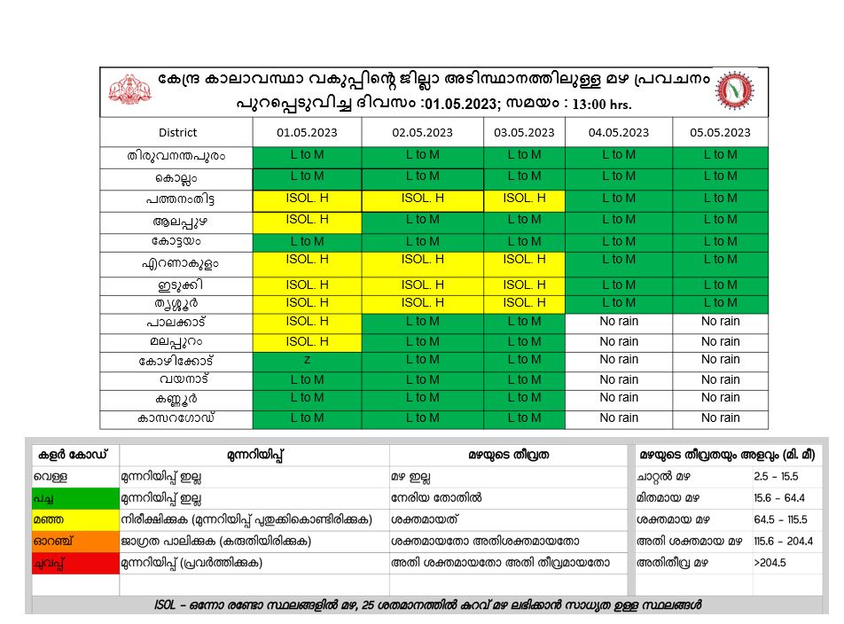 01-05-2023: പത്തനംതിട്ട, ആലപ്പുഴ, എറണാകുളം, ഇടുക്കി, തൃശ്ശൂർ, പാലക്കാട്, മലപ്പുറം