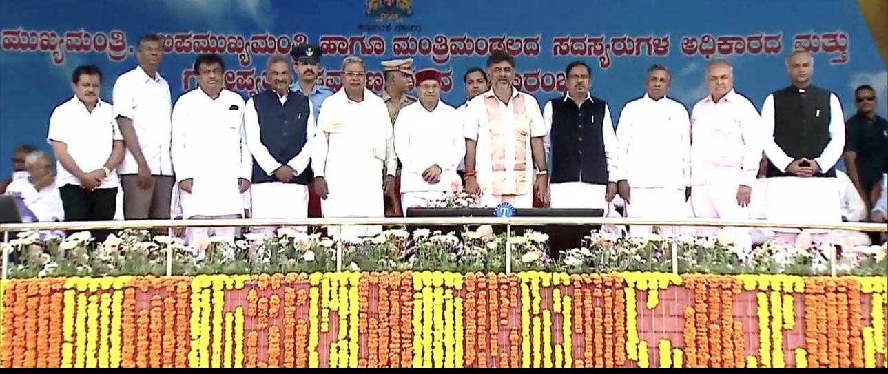 ബെംഗളൂരു കണ്ഠീരവ സ്‌റ്റേഡിയത്തിൽ നടന്ന സത്യപ്രതിജ്ഞ ചടങ്ങിൽ കർണാടക ഗവർണർ തവർചന്ദ് ഗെലോട്ട് തെരഞ്ഞെടുക്കപ്പെട്ട പ്രതിനിധികൾക്ക് സത്യവാചകം ചൊല്ലിക്കൊടുത്തു. കർണാടക മുഖ്യമന്ത്രിക്കും ഉപമുഖ്യമന്ത്രിക്കും പുറമെ എംഎൽഎമാരായ  കെ.ജെ ജോർജ്, എം.ബി പാട്ടീൽ,ജി പരമേശ്വര, കെ.എച്ച് മുനിയപ്പ,  പ്രിയങ്ക് ഖാർഗെ, രാമലിംഗ റെഡ്ഡി,  സമീർ അഹമ്മദ് ഖാൻ ,സതീഷ് ജാർക്കിഹോളി,എന്നിവർ പുതുതായി അധികാരമേറ്റ കർണാടക സർക്കാരിൽ കാബിനറ്റ് മന്ത്രിമാരായി സത്യപ്രതിജ്ഞ ചെയ്തു.