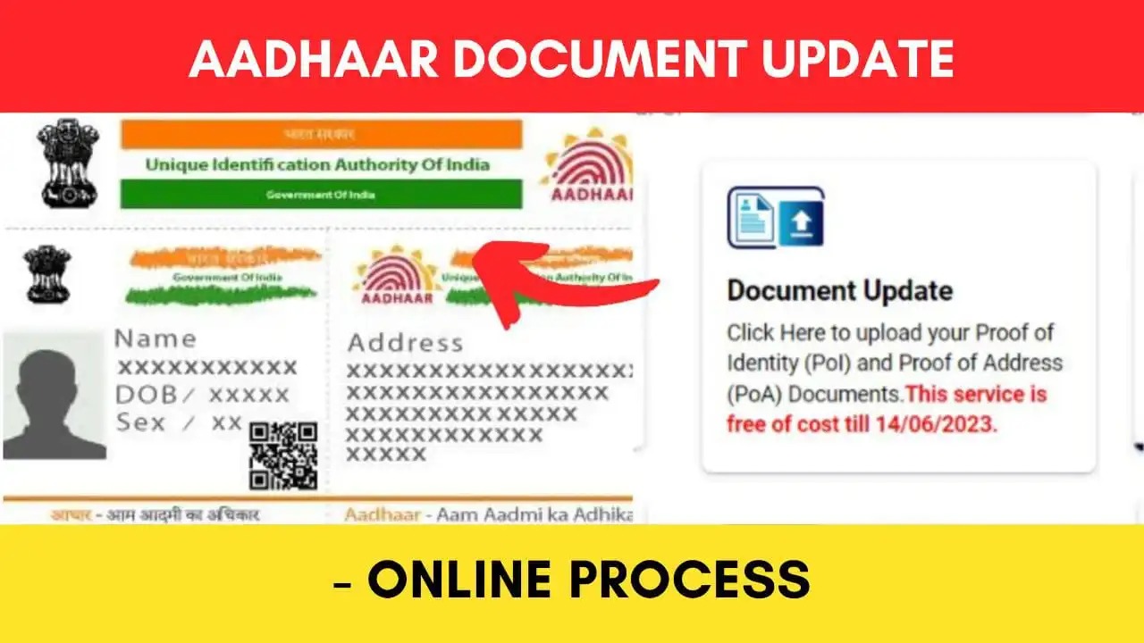 1. https://myaadhaar.uidai.gov.in/ എന്ന ഔദ്യോ​ഗിക പോർട്ടൽ സന്ദർശിക്കുക. 2. നിങ്ങളുടെ വിശദാംശങ്ങൾ ഉപയോഗിച്ച് ലോഗിൻ ചെയ്‌ത് Name, Gender, Date of Birth, and Address Update എന്ന ഓപ്ഷൻ തിരഞ്ഞെടുക്കുക. 3. ഇതിനു ശേഷം Update Aadhaar Online എന്ന ഓപ്ഷനിൽ ക്ലിക്ക് ചെയ്യുക. 4. ഡെമോഗ്രാഫിക് ഓപ്ഷനിലുള്ള അഡ്രസ് തിരഞ്ഞെടുത്ത് Proceed to Update Aadhaar എന്നതിൽ ക്ലിക്ക് ചെയ്യുക. 5. ഡോക്യുമെന്റിന്റെ സ്കാൻ ചെയ്ത ഒരു പകർപ്പ് അപ്‌ലോഡ് ചെയ്‌ത് ആവശ്യമായ മറ്റ് വിശദാംശങ്ങൾ നൽകുക. 6. പേയ്മെന്റ് നടത്തുക (സെപ്റ്റംബർ 14 വരെ സൗജന്യമാണ്) 7. മേൽപ്പറ‍ഞ്ഞ കാര്യങ്ങൾ പൂർത്തിയാക്കിയാൽ നിങ്ങൾക്ക് ഒരു സർവീസ് റിക്വസ്റ്റ് നമ്പർ ലഭിക്കും. അത് സൂക്ഷിച്ചു വെക്കണം.