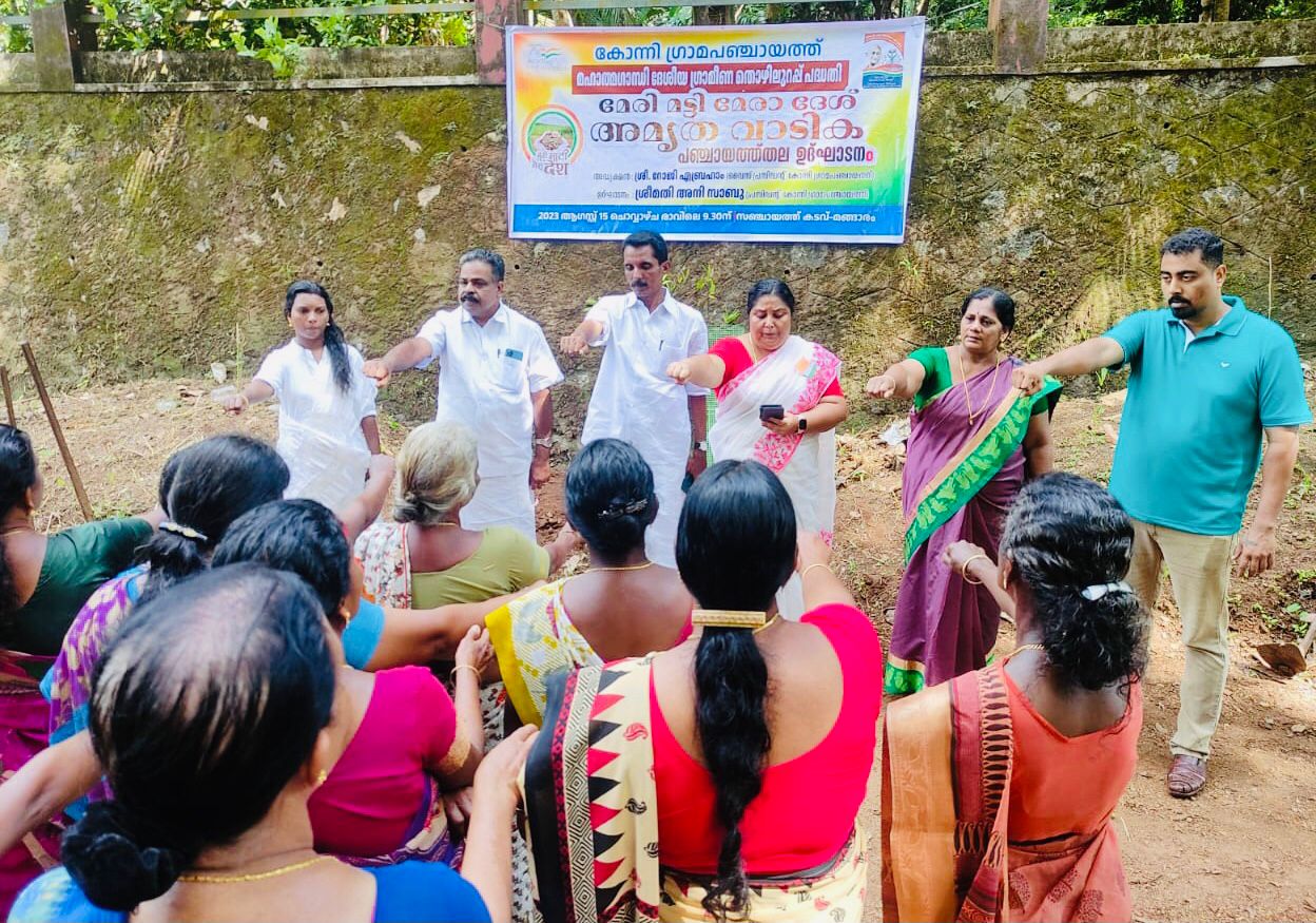 konnivartha.com : ആസാദി കാ അമൃത് മഹോത്സവത്തിന്‍റെ സമാപന ചടങ്ങായ മേരി മാട്ടി മേര ദേശ് ക്യാമ്പിന്‍റെ ഭാഗമായി “അമൃത വാടിക ” കോന്നി ഗ്രാമ പഞ്ചായത്ത് ദേശീയ ഗ്രാമീണ തൊഴിലുറപ്പ് പദ്ധതിയുടെ നേതൃത്വത്തിൽ മങ്ങാരം സഞ്ചായത്തു കടവിൽ വെച്ച് നടന്നു
