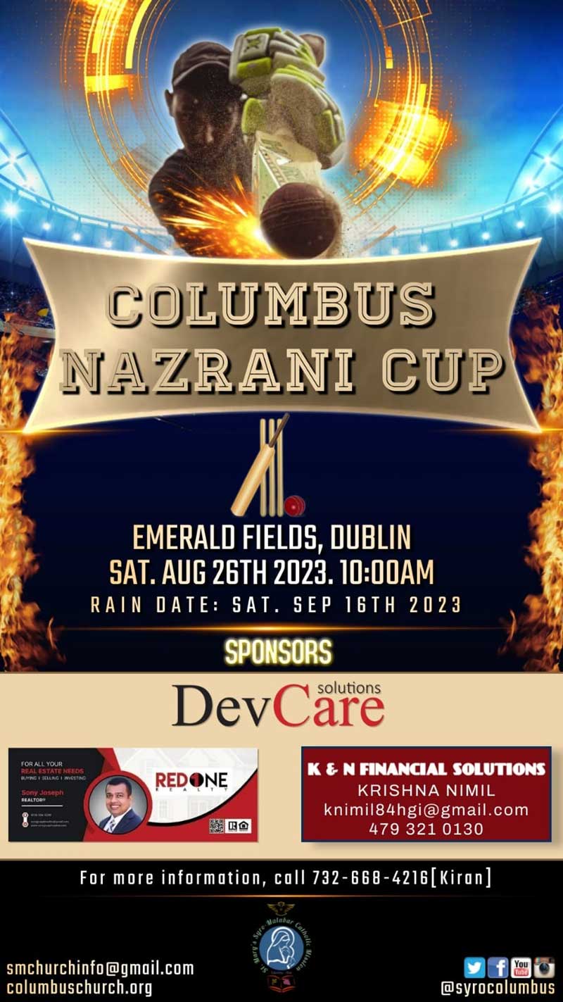 konnivartha.com: കൊളംബസ് (ഒഹായോ): സെന്റ് മേരീസ് സിറോ മലബാര് കത്തോലിക്ക മിഷന്റെ നേതൃത്വത്തില് കഴിഞ്ഞ എട്ടു വർഷമായി നടത്തുന്ന സിഎൻസി എക്സ്റ്റേണൽ ക്രിക്കറ്റ് ടൂർണമെന്റ് ഓഗസ്റ്റ് 26ന് ഡബ്ലിൻ എമറാൾഡ് ഫീൽഡിൽ നടക്കുമെന്ന് സംഘാടകർ അറിയിച്ചു. മുൻ വർഷങ്ങളിലെ പോലെ ഇത്തവണയും മിഷന് പുറത്തുള്ള ടീമുകളെ കൂടി ഉൾകൊള്ളിച്ചാണ് മൽസരം. ഓഗസ്റ്റ് 5ന് നടന്ന സിഎൻസി ഇന്റേണൽ ക്രിക്കറ്റ് ടൂർണമെന്റ്ൽ ജിൻസൺ സാനിയുടെ നേതൃത്വത്തിൽ റെഡ് ഫാൽക്കൺസ് ടീം വിജയികളായി.