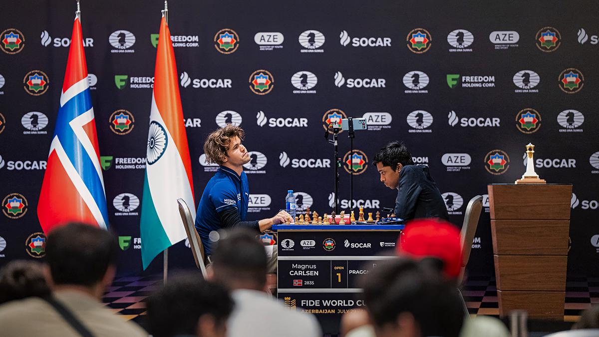 ഫിഡെ ചെസ് ലോകകപ്പിൽ ലോക ചാമ്പ്യൻ മാഗ്നസ് കാൾസന് വിജയം. ഇന്ത്യയുടെ ആർ പ്രഗ്നാനന്ദ പൊരുതിത്തോറ്റു. രണ്ട് തവണ കാൾസനെ ടൈയിൽ കുരുക്കിയ പ്രഗ്നാന്ദ എന്നാൽ ഫൈനലിലെ ടൈ ബ്രേക്കറിലെ ആദ്യ ഗെയിമിൽ തോൽവി നേരിട്ടു. പിന്നാലെ നടന്ന ഗെയിമിലും വിജയിച്ചാണ് മാഗ്നസ് കാൾസൺ ലോകകിരീടം സ്വന്തമാക്കിയത്.മികച്ച പ്രകടനമാണ് ഇരുതാരങ്ങളും കാഴ്ചവച്ചത്. കറുത്ത കരുക്കളുമായാണ് മാഗ്നസ് കാൾസൺ കളിച്ചത്. നിലവിൽ 23-ാം റാങ്കിലാണ് പ്രഗ്നാനന്ദ. ഫൈനലിലെ ആദ്യ മത്സരത്തിലൽ 35 നീക്കത്തിന് ശേഷം സമനിലയിൽ അവസാനിച്ചിരുന്നു. ലോക ജേതാവായ കാൾസനെതിരെ നടന്ന ആദ്യ മത്സരത്തിൽ മുൻതൂക്കം നേടാൻ പ്രഗ്നാനന്ദയ്ക്ക് സാധിച്ചിരുന്നു.