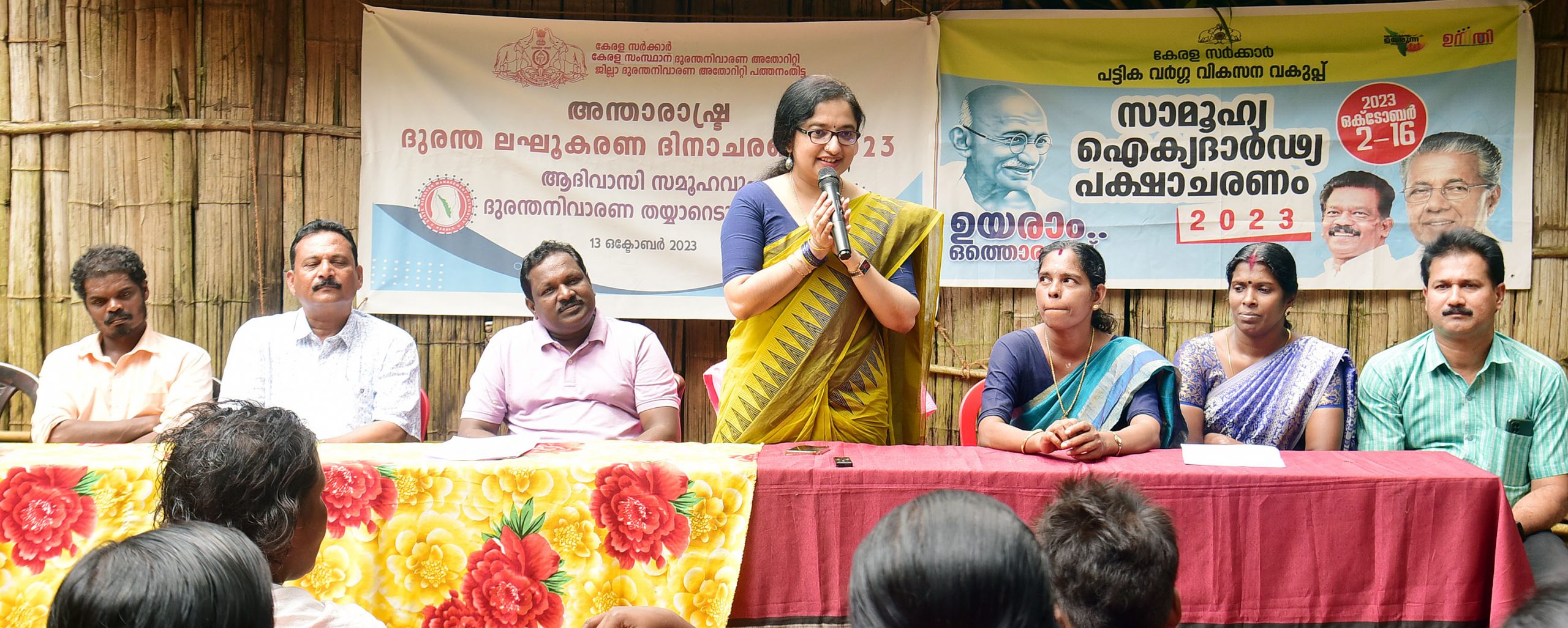 ദുരന്തനിവാരണം നടപ്പാക്കുന്നതില്‍  ജനങ്ങളുടെ പങ്കാളിത്തം അത്യാവശ്യമാണെന്ന് ജില്ലാ കളക്ടര്‍ ഡോ.ദിവ്യ എസ് അയ്യര്‍ പറഞ്ഞു. അന്താരാഷ്ട്ര ദുരന്തലഘൂകരണദിനാചരണത്തിന്റെ ജില്ലാതല ഉദ്ഘാടനം മഞ്ഞത്തോട് ആദിവാസി ഊരില്‍ നിര്‍വഹിക്കുകയായിരുന്നു അവര്‍.