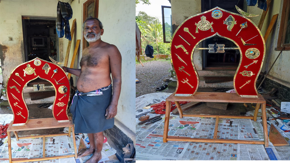 വ്രതാനുഷ്ഠാനങ്ങളോടെ ഒരു മാസക്കാലം കൊണ്ടാണ് കോലത്തിന്റെ നിർമ്മാണം പൂർത്തിയാക്കിയത്. കോലത്തിൽ പതിച്ചിരിക്കുന്ന എല്ലാ രൂപങ്ങളും ശശികുമാർ തന്റെ ആലയിൽ കര വിരുതിൽ തീർത്തെടുത്തതാണ് .