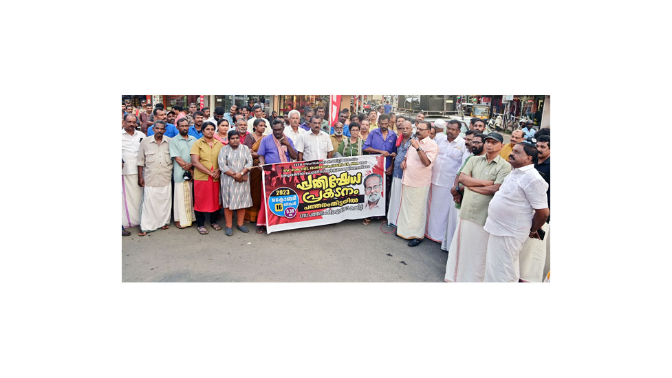 konnivartha.com/പത്തനംതിട്ട : സി ഐ ടി യു സംസ്ഥാന കമ്മിറ്റി അംഗവും മുന് എം എല്എയുമായ കെ. സി. രാജഗോപാലനെ ക്രൂരമായി മര്ദിച്ച കീഴ് വായ്പ്പൂര് എസ് ഐ ആദർശിനെതെരെ നടപടി എടുക്കണമെന്നാവശ്യപ്പെട്ടുകൊണ്ട് സി ഐ റ്റി യു ഏരിയ കമ്മിറ്റികളുടെ നേതൃത്വത്തിൽ പ്രതിഷേധ പ്രകടനവും യോഗവും നടത്തി.