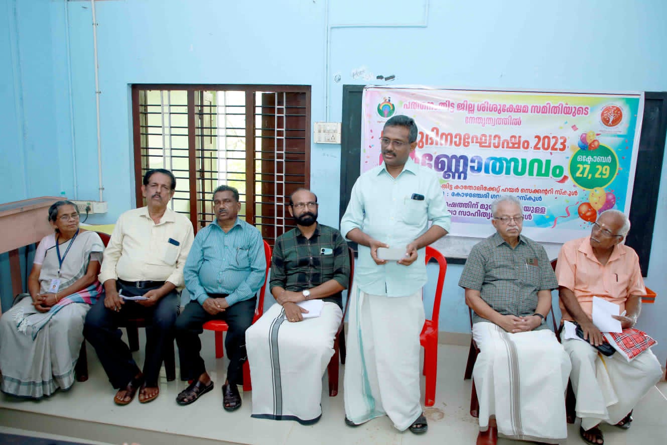 ശിശുക്ഷേമ സമിതി ജില്ല വൈസ് പ്രസിഡന്റ് അജിത് കുമാർ ആർ. ചടങ്ങിൽ അദ്ധ്യക്ഷത വഹിച്ചു. സ്കൂൾ പ്രിൻസിപ്പൽ ജേക്കബ് ജോർജ്ജ് കുറ്റിയിൽ മുഖ്യപ്രഭാഷണം നടത്തി. ശിശുക്ഷേമ സമിതി സംസ്ഥാന സമിതി അംഗം പ്രൊഫ.ടി കെ.ജി നായർ , ശിശുക്ഷേമ സമിതി ജില്ല സെകട്ടറി ജി. പൊന്നമ്മ , ജില്ല ജോയിന്റ് സെക്രട്ടറി സലിം പി. ചാക്കോ , ജില്ല ട്രഷറാർ ദീപു ഏ.ജി , സുമ നരേന്ദ്രാ , എസ്. മീരാസാഹിബ് , സി.ആർ കൃഷ്ണക്കുറുപ്പ് തുടങ്ങിയവർ പ്രസംഗിച്ചു.