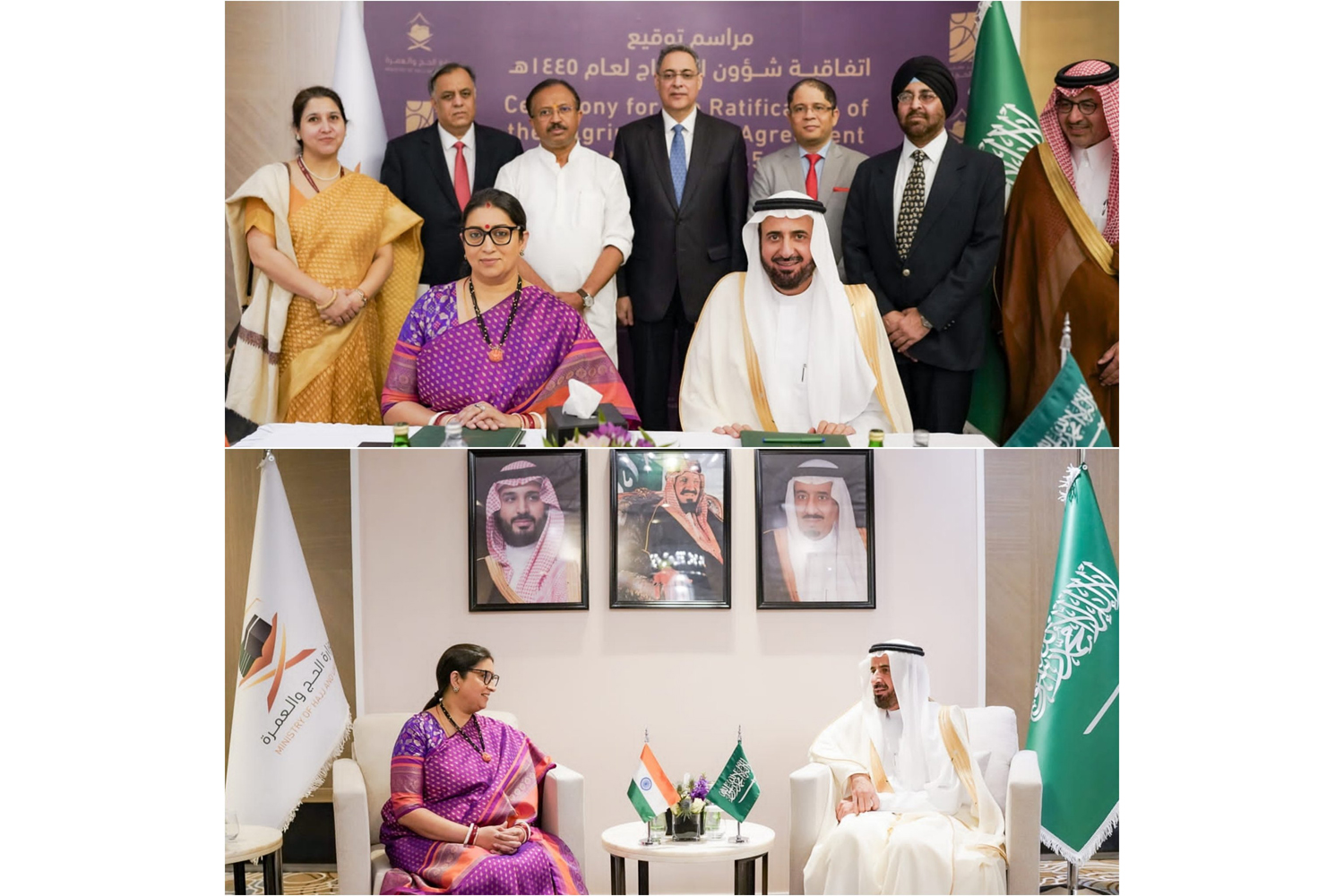ഇന്ത്യയും സൗദിയും തമ്മിലുള്ള ഈ വർഷത്തെ ഹജ്ജ് കരാറിൽ ഇരു രാജ്യങ്ങളിലെയും മന്ത്രിമാർ ഒപ്പുവെച്ചു. ജിദ്ദയിൽ നടന്ന ചടങ്ങിൽ സൗദി ഹജ്ജ്, ഉംറ കാര്യ വകുപ്പ് മന്ത്രി ഡോ. തൗഫീഖ് ബിൻ ഫൗസാൻ അൽ റബീഅ, ഇന്ത്യൻ ന്യൂനപക്ഷകാര്യ മന്ത്രി സ്‌മൃതി ഇറാനി എന്നിവരാണ് കരാറിൽ ഒപ്പുവെച്ചത്.